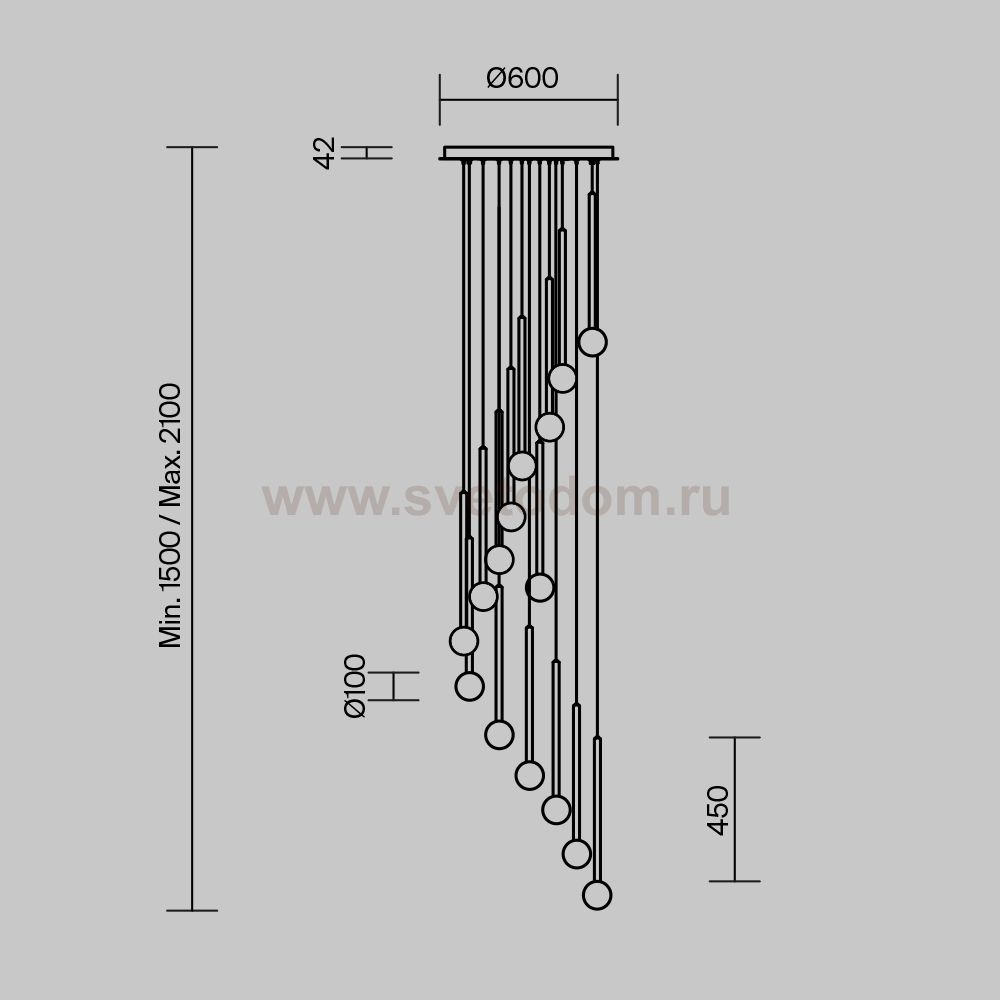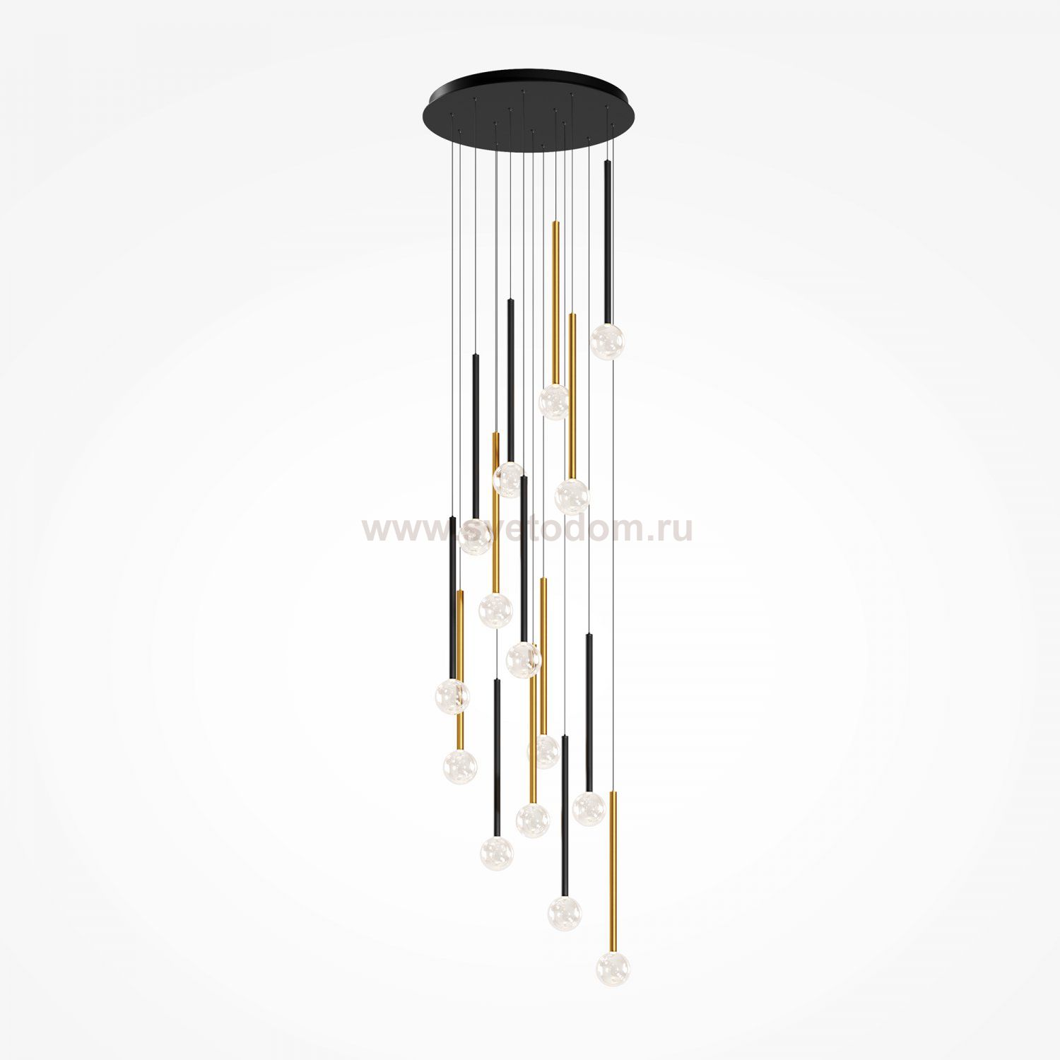 Цвет арматуры — черный, латунь, комбинация черный и латунь. Материал арматуры — металл. Цветовая температура 3000К. Оригинальный «невесомый» дизайн с тонкими металлическими трубками и стеклянными шарами-плафонами. LED-источники света. Регулируемая длина провода подвесных светильников, 3 метра, подходит для помещений с высокими потолками. Каскадная композиция на 7 и 15 плафонов оснащена проводом длиной 3,5 метра для эффектных дизайнерских решений. Подходит для высоких потолков. Парящие модели для создания легкой, воздушной атмосферы в интерьере. |