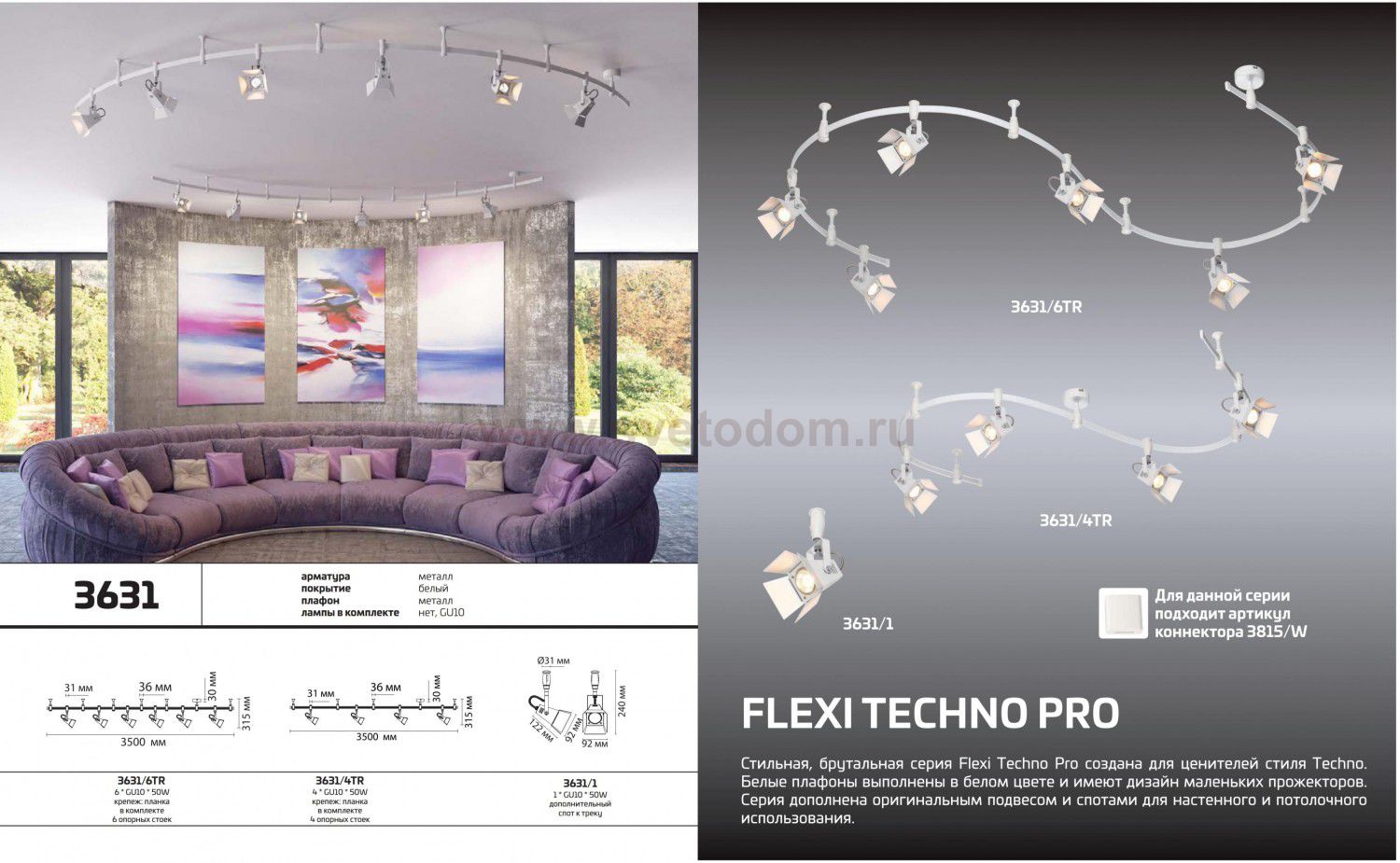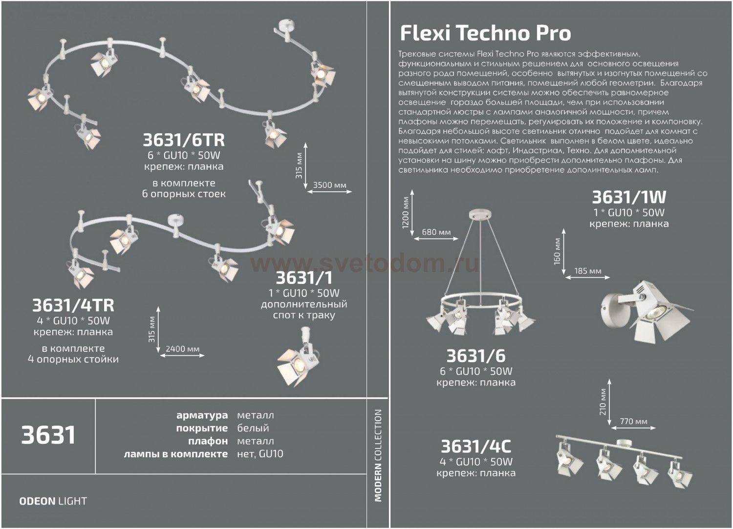3631/4TR MODERN ODL19 193 белый Гибкая трековая система IP20 GU10 4*50W 220V FLEХITECHNO PRO Штрих-код