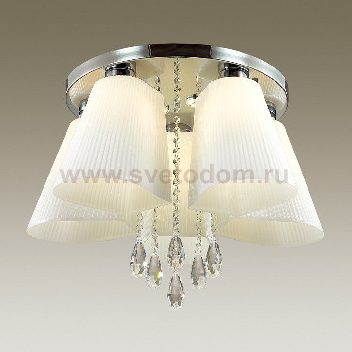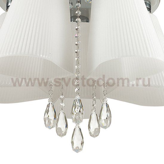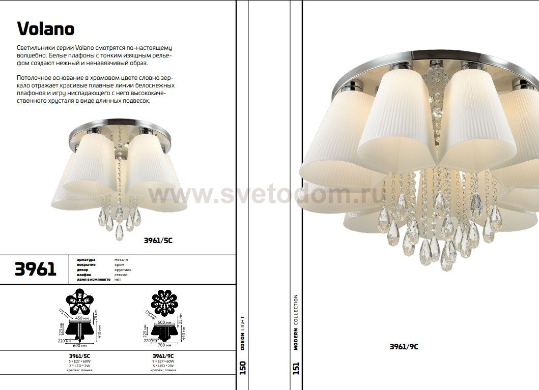 Храктерная особенность артикула 3961/5C: Люстра 3961/5C серии Volano смотрится по-настоящему волшебно. Пять белых плафонов с тонким изящным рельефом создают нежный и ненавязчивый образ. Потолочное основание в хромовом цвете словно зеркало отражает красивые плавные линии белоснежных плафонов и игру ниспадающего с него высококачественного хрусталя в виде длинных подвесок. Цоколь E27 5*60W, LED 2*2W. Светодиодные лампы в комплекте.