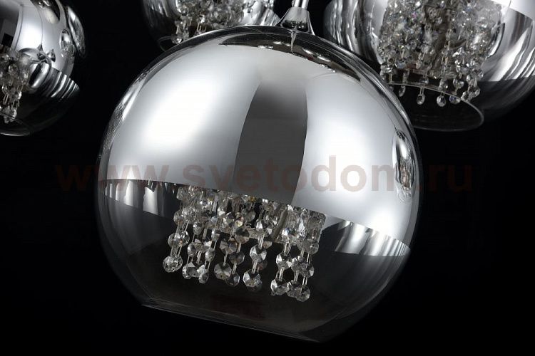 Каркас и скрывающие плафоны колбы из металла. Подвески из *хрусталя. Комментарий