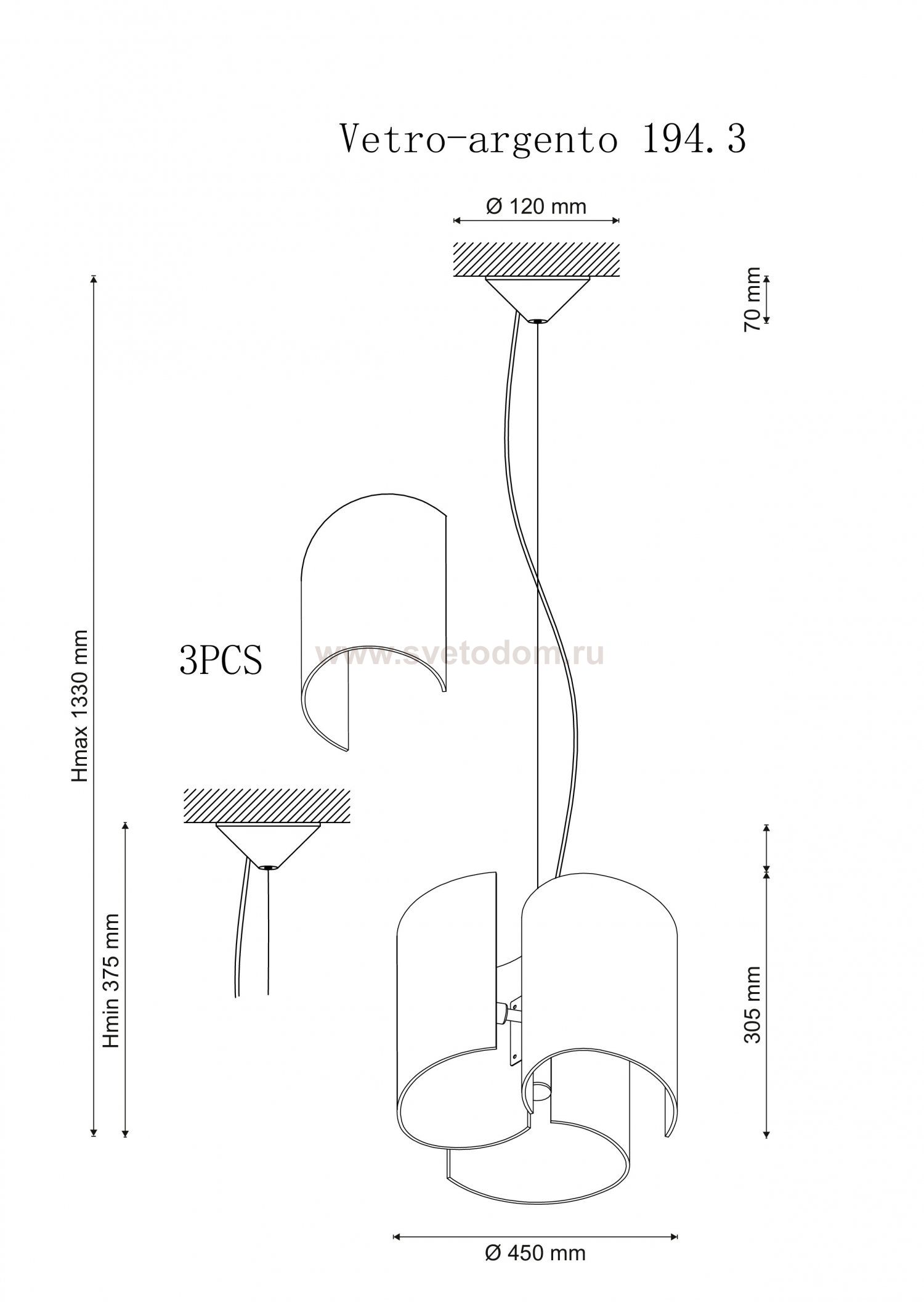 375 Высота абажура, мм