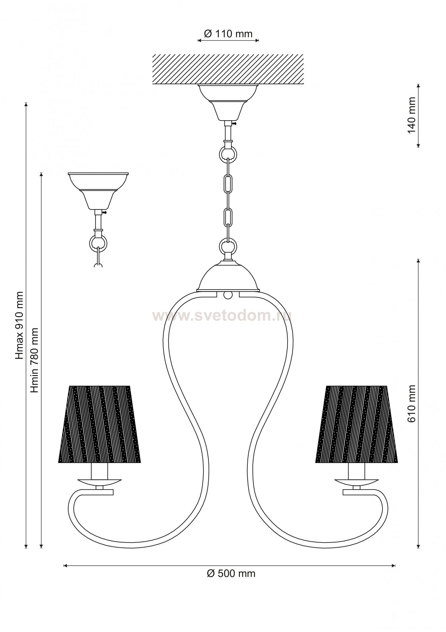 780 Высота абажура, мм