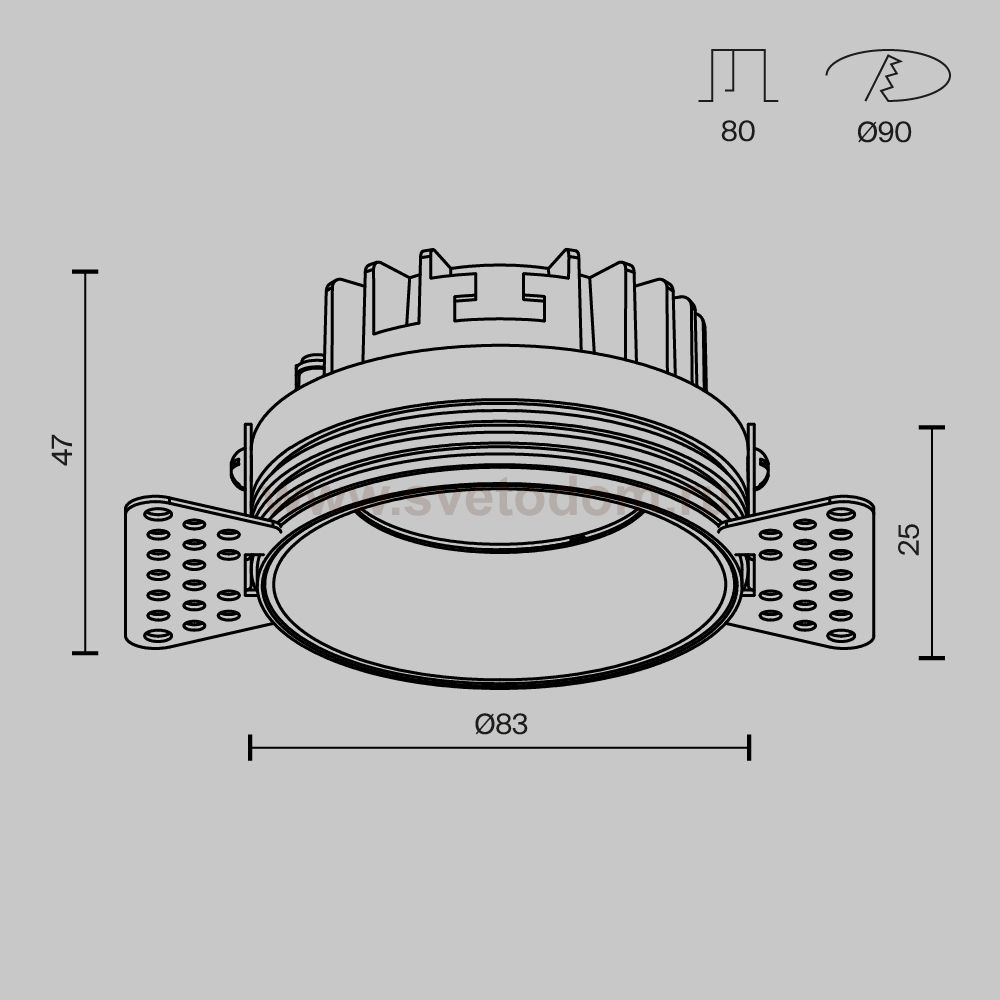 Данный размер указывает какое отверстие необходимо сделать для правильного монтажа. Зачастую светильники выбирают после ремонта и сделанных монтажных отверстий, тогда подбор осуществляется строго в размер +/- 2-5мм.