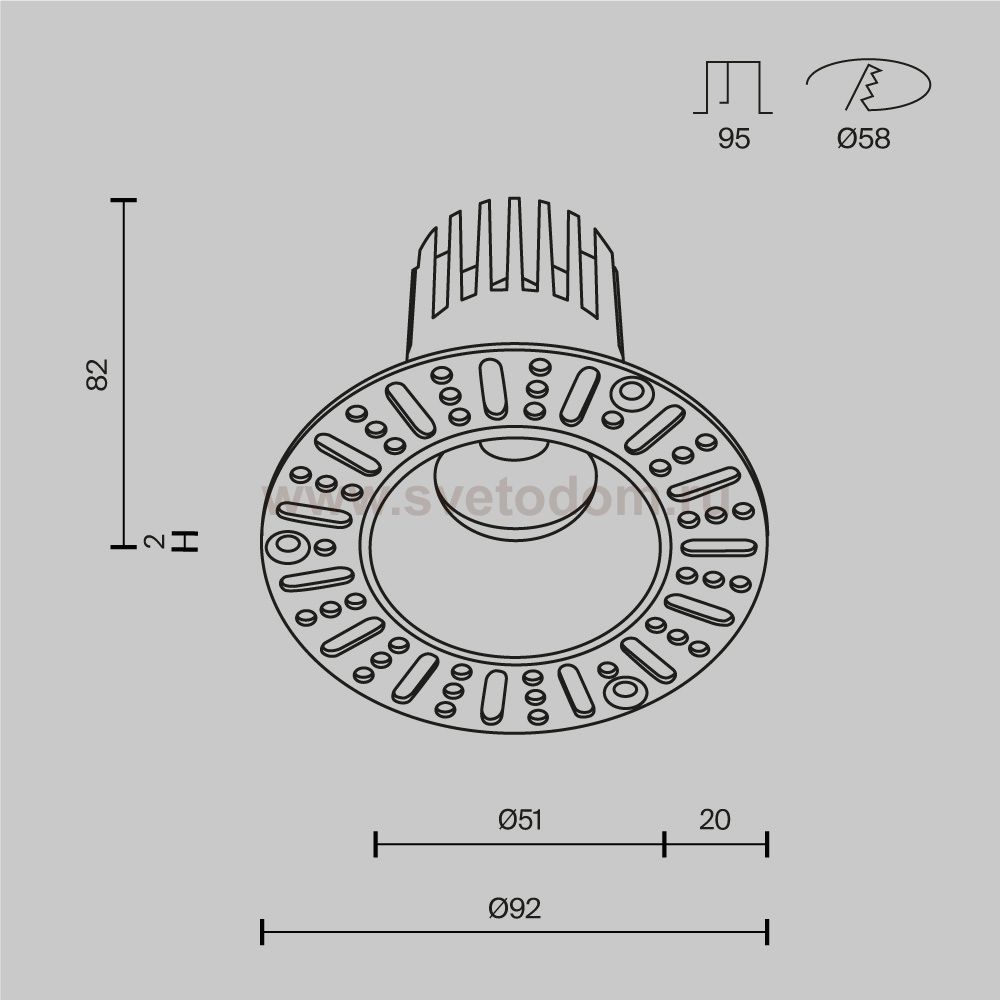 Данный размер указывает какое отверстие необходимо сделать для правильного монтажа. Зачастую светильники выбирают после ремонта и сделанных монтажных отверстий, тогда подбор осуществляется строго в размер +/- 2-5мм.