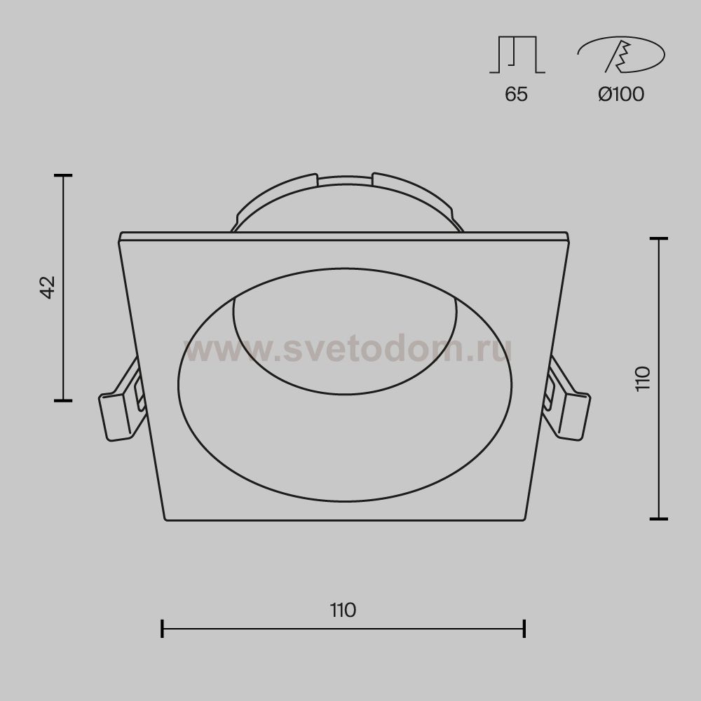 Данный размер указывает какое отверстие необходимо сделать для правильного монтажа. Зачастую светильники выбирают после ремонта и сделанных монтажных отверстий, тогда подбор осуществляется строго в размер +/- 2-5мм.