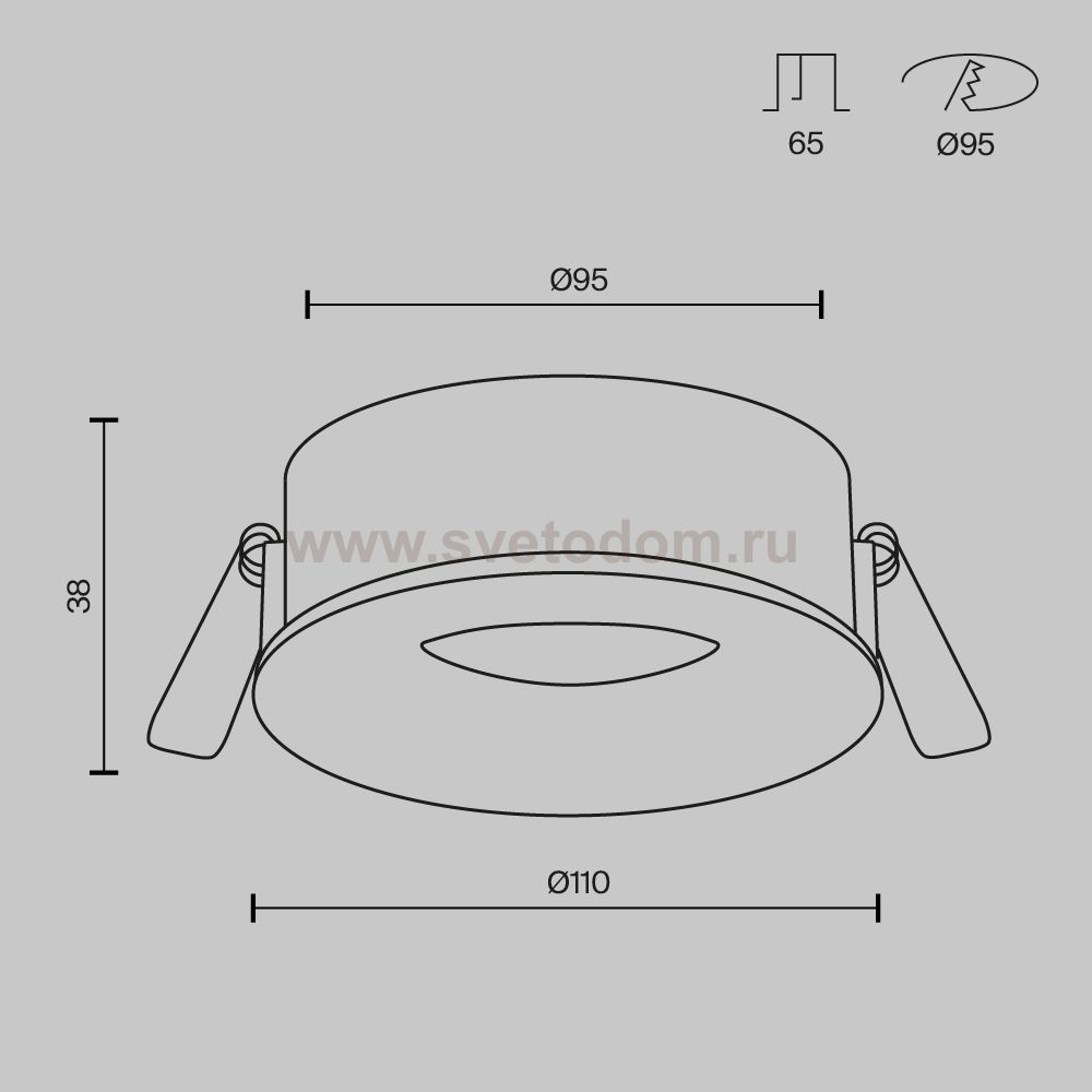 Данный размер указывает какое отверстие необходимо сделать для правильного монтажа. Зачастую светильники выбирают после ремонта и сделанных монтажных отверстий, тогда подбор осуществляется строго в размер +/- 2-5мм.
