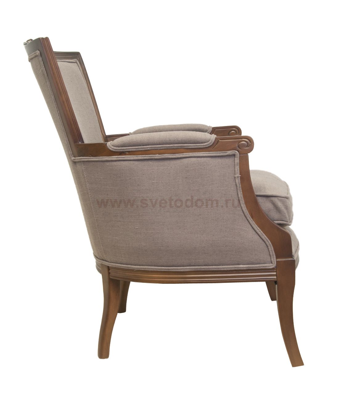 Кресло Tous grey светло-серого цвета в оригинальном дизайне, с каркасом из массива бука и бежевой обивкой из мягкой ткани – смеси хлопка и льна. По периметру спинки проходит деревянная окантовка, переходящая в подлокотники с мягкой накладкой. Пышное объемное сиденье служит для комфортного отдыха. Нейтральная расцветка придает модели универсальность, позволяет вписываться в любые интерьеры.