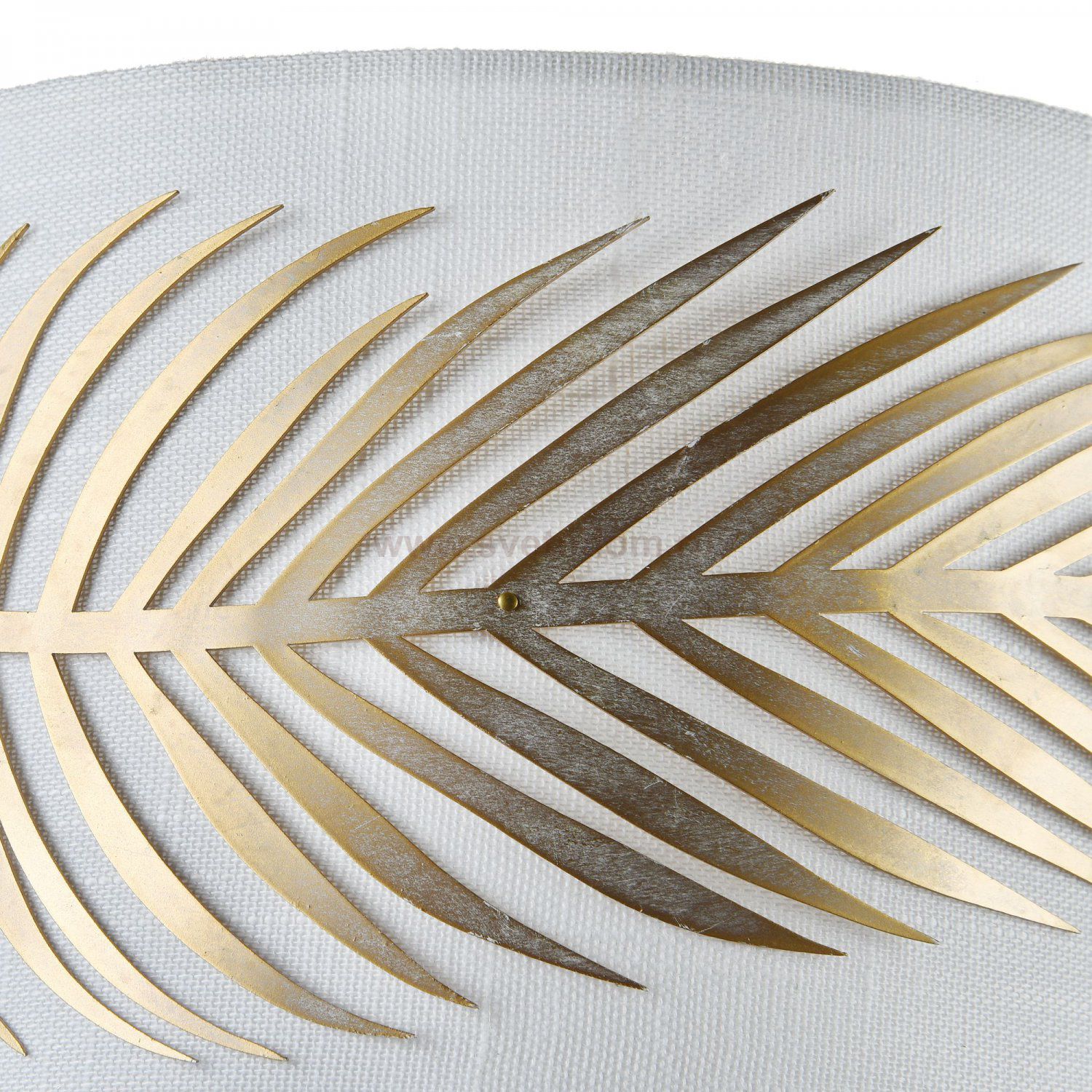 Арматура из металла, цвет – золото. Абажур – белый текстиль на ПВХ. Декор – пальмовая ветвь из листового металла. Рассеиватель фиксируется декоративным наконечником. Высота люстр регулируется.