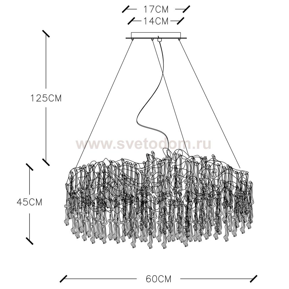 Характеризует подвесную систему светильника. Данную длину возможно изменять: дополнять или сокращать в пределах указанных данных.