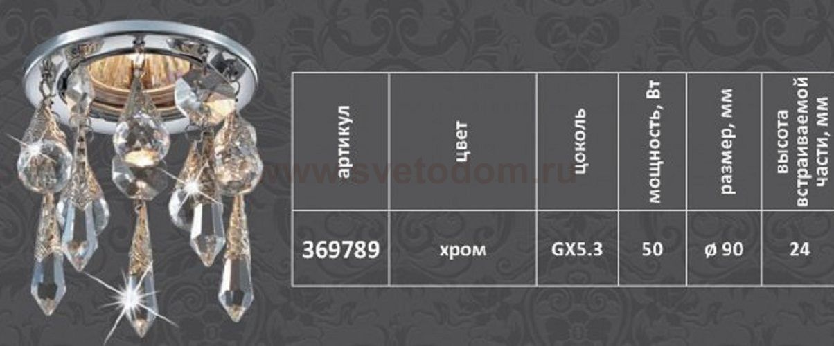 Встраиваемые светильники – популярное осветительное оборудование, которое можно использовать в качестве основного источника или в дополнение к люстре. Они позволяют создать нужную атмосферу атмосферу и привнести в интерьер уют и комфорт. Интернет-магазин «Светодом» предлагает стильный встраиваемый светильник Novotech 369789. Данная модель достаточно универсальна, поэтому подойдет практически под любой интерьер. Перед покупкой не забудьте ознакомиться с техническими параметрами, чтобы узнать тип цоколя, площадь освещения и другие важные характеристики. Приобрести встраиваемый светильник Novotech 369789 в нашем онлайн-магазине Вы можете либо с помощью «Корзины», либо по контактным номерам. Мы развозим заказы по Москве, Екатеринбургу и остальным российским городам.