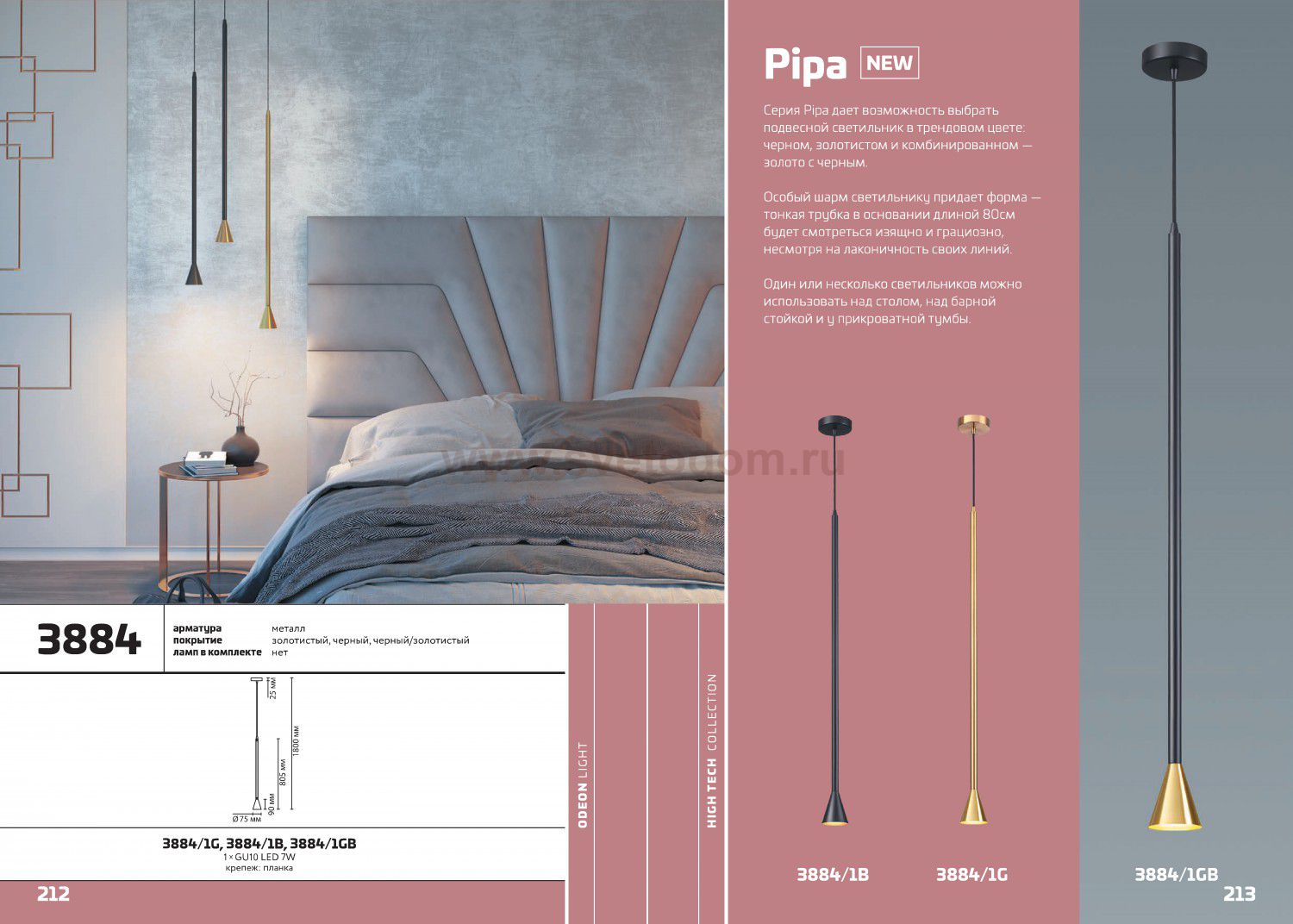 3884/1GB HIGHTECH ODL20 253 черно-золотистый/металл Подвесной светильник LED GU10 7W 220V PIPA