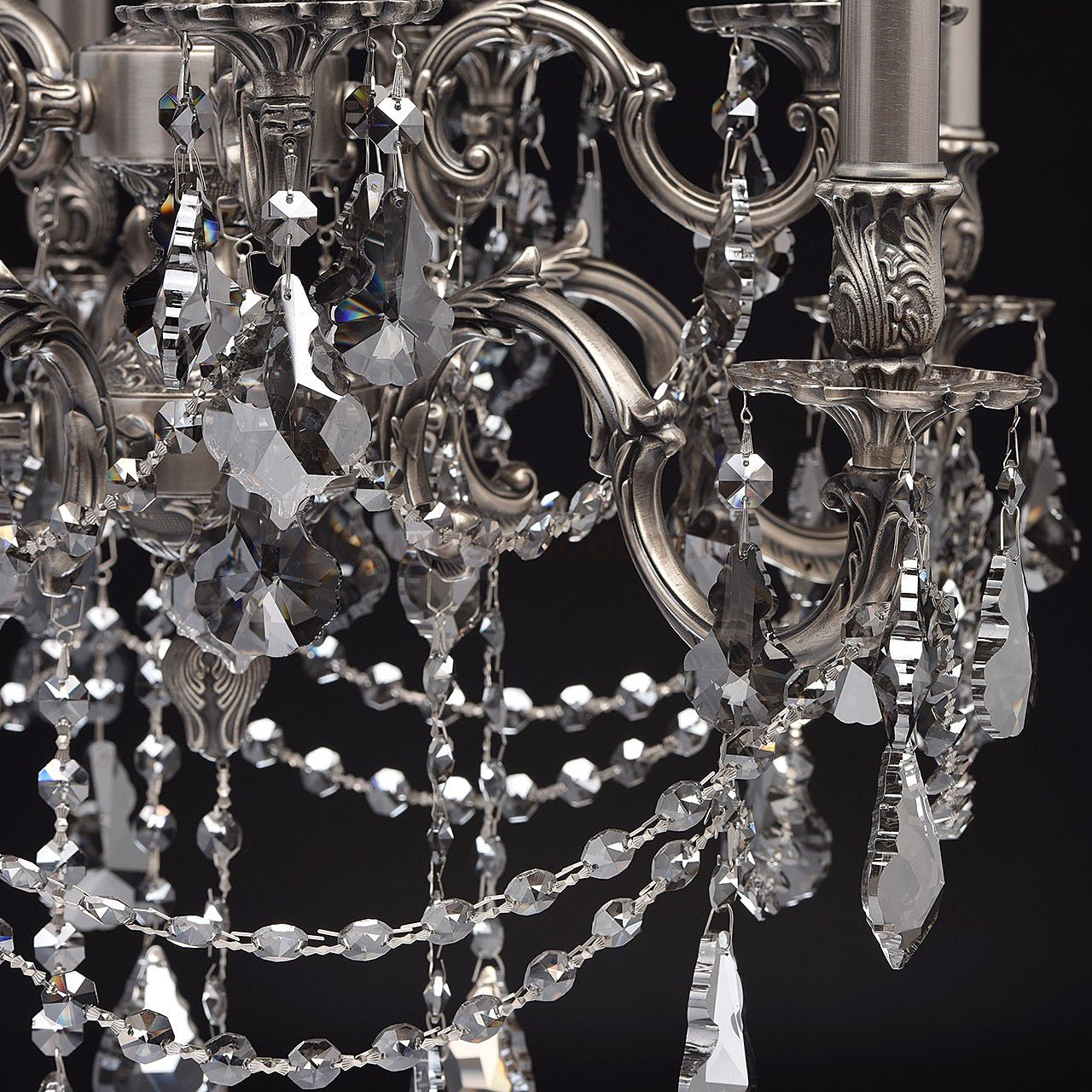 Описание модели 491010110: Классика декора - изысканные светильники с плафонами "свеча" - стиль и роскошь на все времена! Светильник, обрамлён тонким рисунком по драгоценному металлу - черненому серебру, каждая деталь выполнена с особой точностью и мастерством. Ручная работа самого высокого класса, когда рождается уникальный образец истинного искусства. Колористический образ потолочной люстры выполнен с учётом стилистики классицизма романского периода. Хрустальная паутинка создаёт законченный образ парадного дворцового светильника традиционного классического стиля.