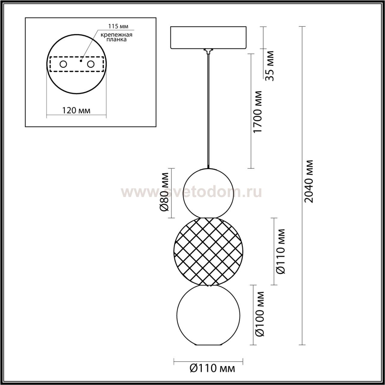 арматура: металл, плафон:акрил, декор: металл Материал плафона