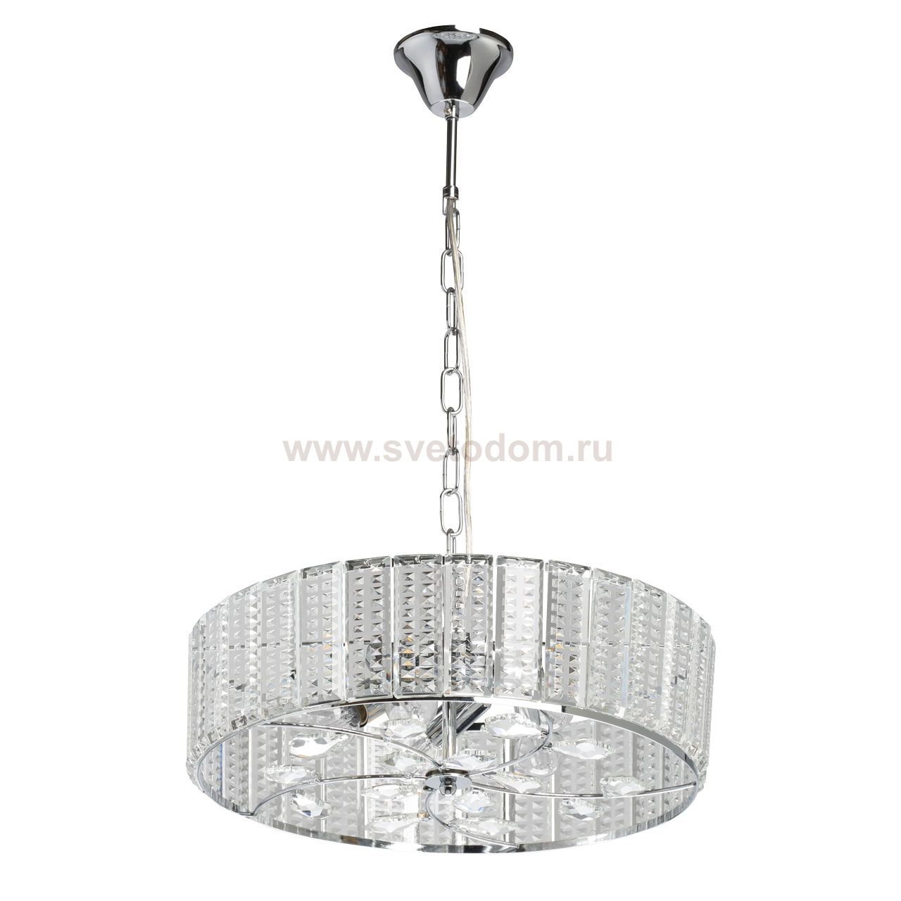 Металлическое основание светильника гальванизировано в цвет хрома. Светильник декорирован прозрачным фактурным стеклом и хрустальными элементами в форме дубового листа. Комментарий