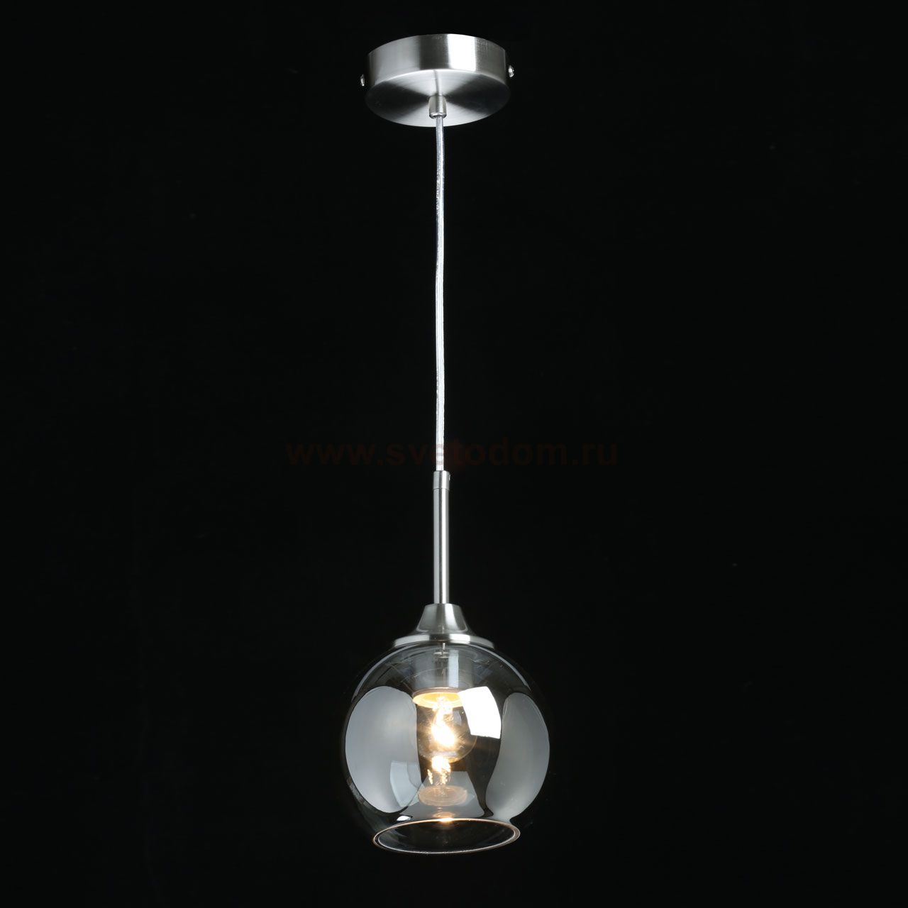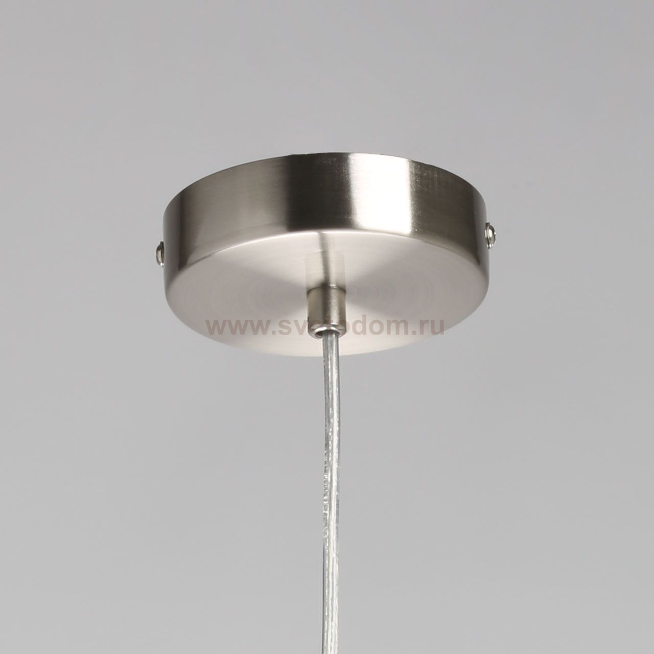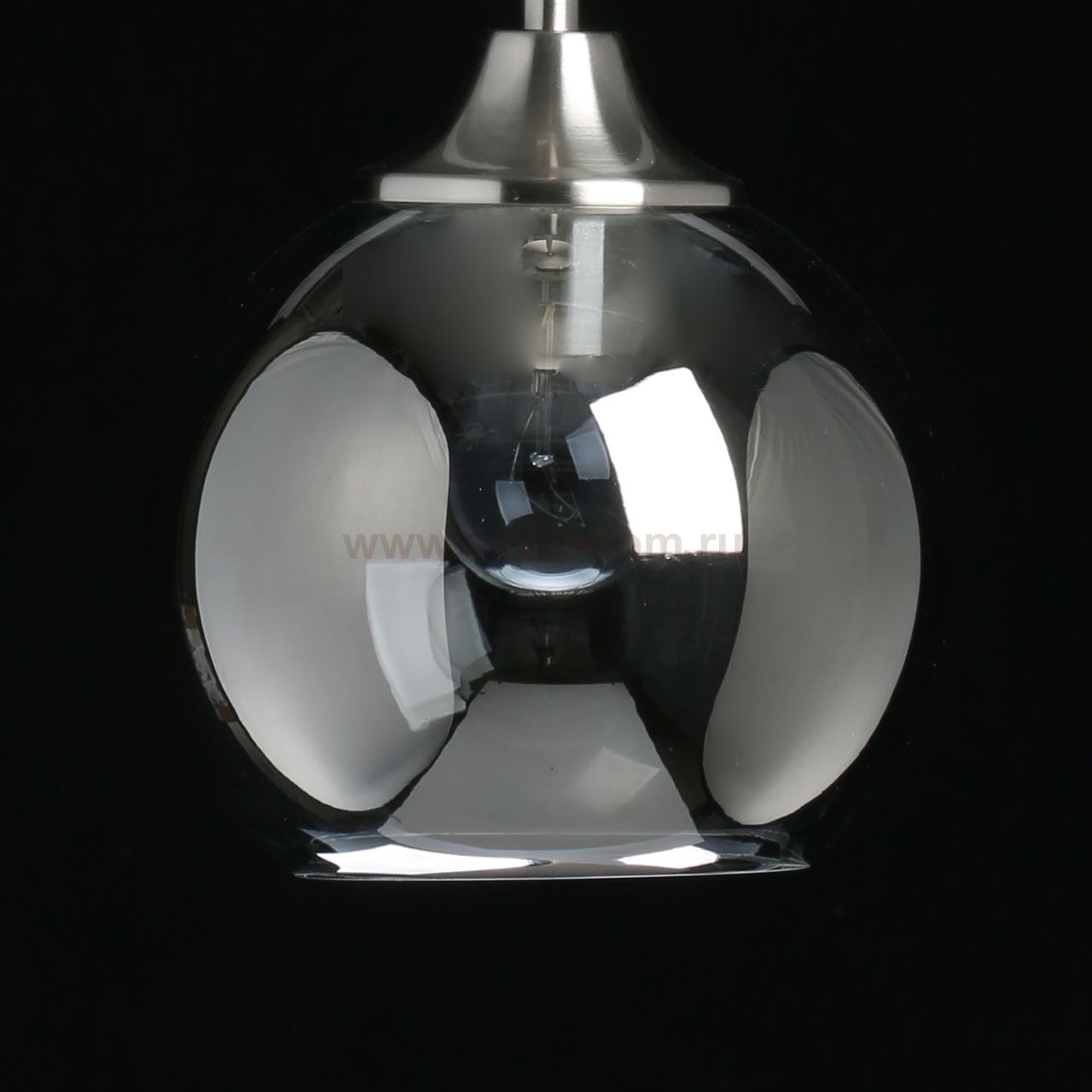 Металлическое основание подвесной люстры гальванизировано в цвет никеля. Стеклянный плафон ручной выдувки гальванизирован в дымчатый цвет. Комментарий