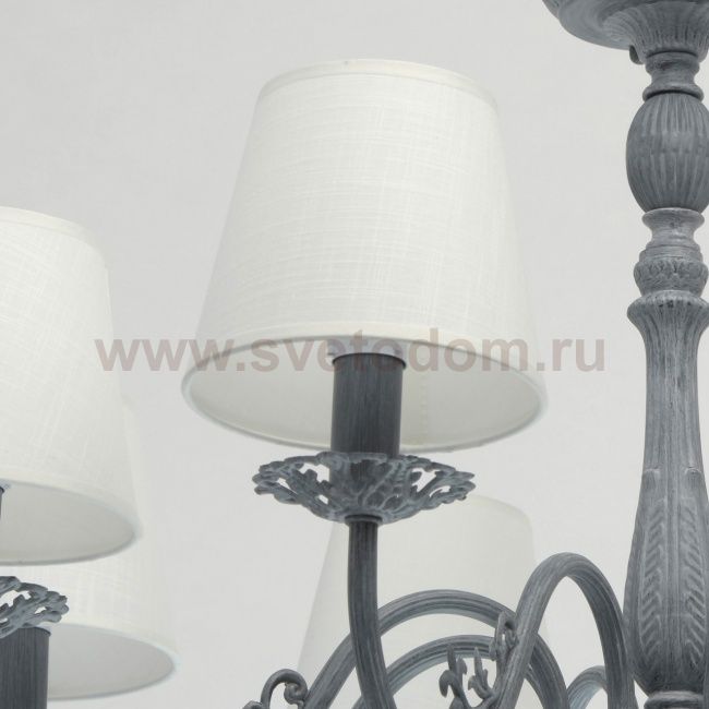 Изящная люстра из коллекции «Ундина» станет прекрасным дополнением классической обстановки. Белое металлическое основание украшено эффектом серебряного патинирования. Элегантные абажуры из ткани белого оттенка подчеркнуты декоративными резными розетками, а грациозный изгиб рожка дополняет витиеватый декор. Нежная цветовая палитра, легкость и воздушность композиции наполнят обстановку атмосферой романтики.
