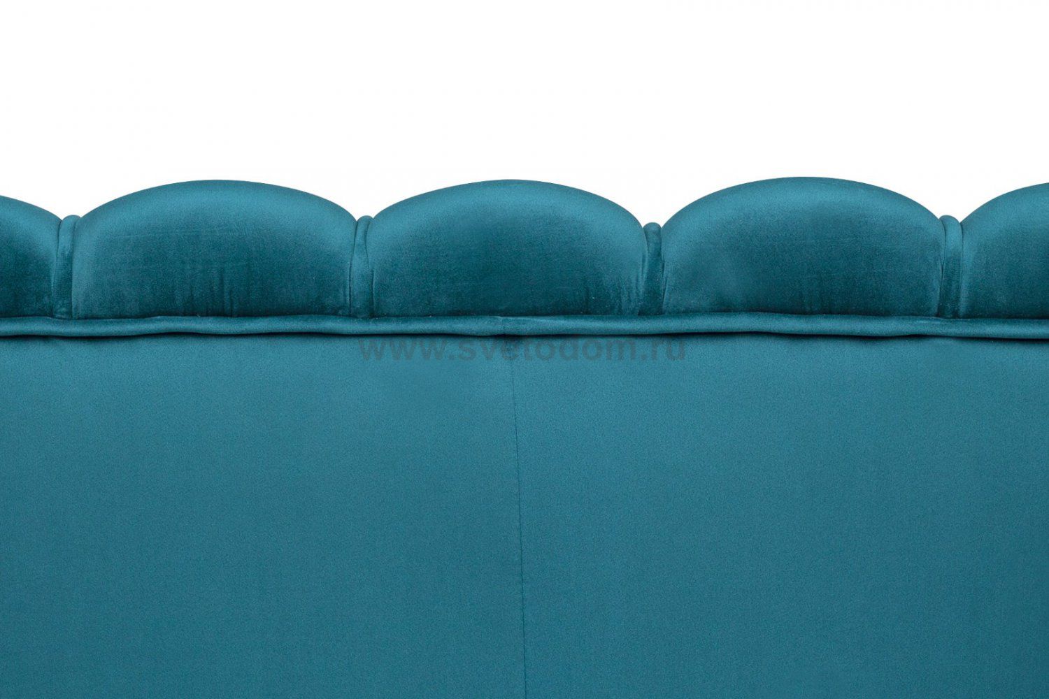 Сине-зеленый диван с обивкой из велюра Pearl triple marine velvet на основе каркаса из натурального дерева, с бархатистой велюровой обивкой, декорированной продольными стежками на внутренней стороне спинки. Модель выполнена в глубоком сине-зеленом цвете, по форме напоминает створку раковины, огибающей жемчужину – круглую подушку для сидения. Короткие металлические ножки с блестящей золотистой поверхностью расходятся в виде лучей под небольшим наклоном к основанию. Мебель роскошно выглядит и подходит для оформления элитных интерьеров.