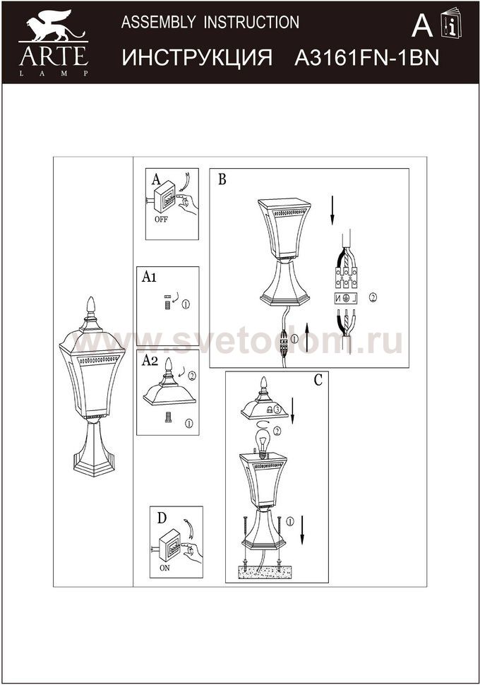 Обеспечение качественного уличного освещения – важная задача для владельцев коттеджей. Компания «Светодом» предлагает современные светильники, которые порадуют Вас отличным исполнением. В нашем каталоге представлена продукция известных производителей, пользующихся популярностью благодаря высокому качеству выпускаемых товаров. Уличный светильник Arte lamp A3161FN-1BN не просто обеспечит качественное освещение, но и станет украшением Вашего участка. Модель выполнена из современных материалов и имеет влагозащитный корпус, благодаря которому ей не страшны осадки. Купить уличный светильник Arte lamp A3161FN-1BN, представленный в нашем каталоге, можно с помощью онлайн-формы для заказа. Чтобы задать имеющиеся вопросы, звоните нам по указанным телефонам.