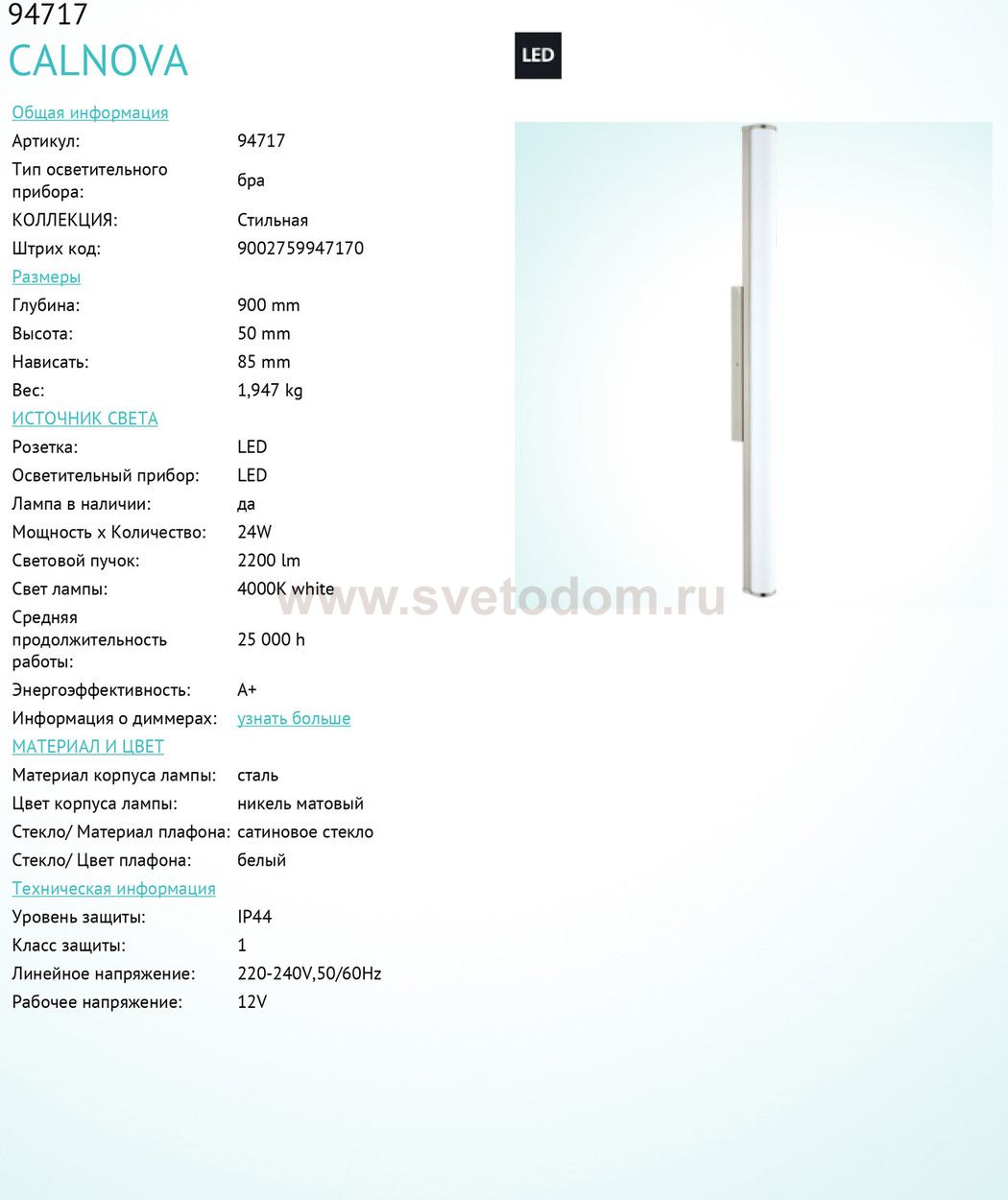 светильник для ванной комнаты и зеркал Артикул производителя