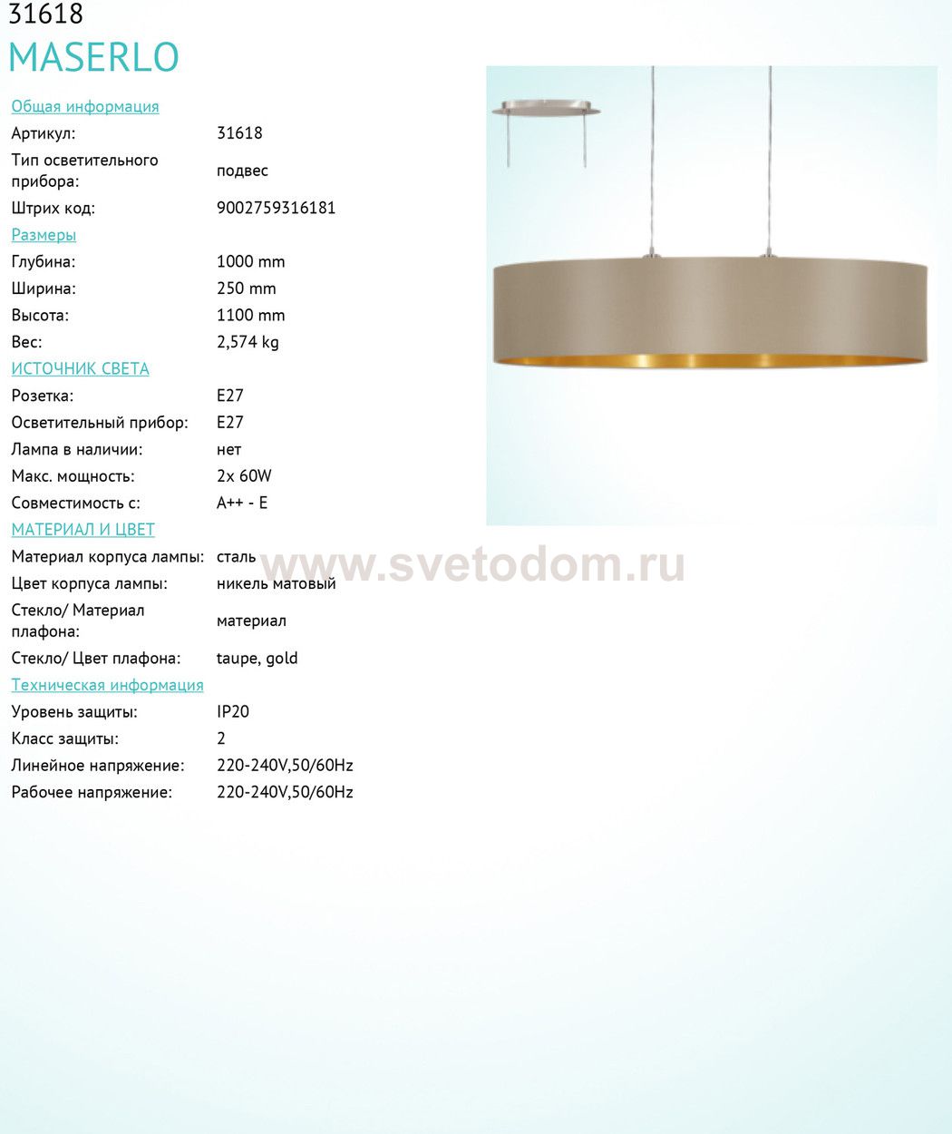 Стильная люстра Eglo 31618 станет украшением любого дома. Эта модель от известного производителя не оставит равнодушным ценителей красивых и оригинальных предметов интерьера. Люстра Eglo 31618 обеспечит равномерное распределение света по всей комнате. При выборе обратите внимание на характеристики, позволяющие приобрести наиболее подходящую модель.