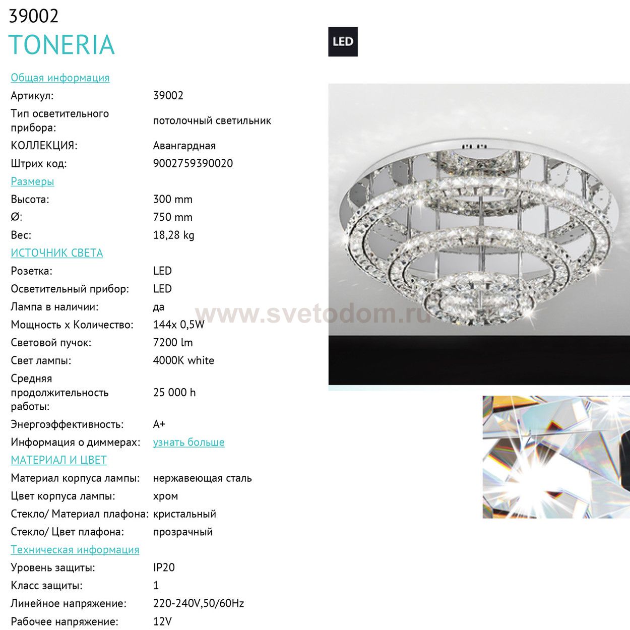 Светодиодный потолочный светильник Eglo 39002 TONERIA сделает Ваше помещение современным, стильным и запоминающимся! Наиболее эстетически привлекательно и функционально модель будет смотреться как в зале, гостевой, холле или другой комнате. А в совокупности с настенными или напольными светильниками из этой же коллекции, сделает интерьер по-дизайнерски законченным и профессиональным.