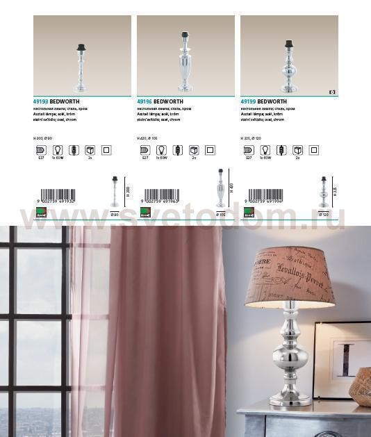 Основа для настольной лампы BEDWORTH, 1x60W (E27), ?90, H300, сталь, хром применяется преимущественно в домашнем освещении с использованием стандартных выключателей и переключателей для сетей 220V.