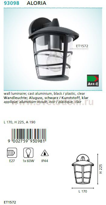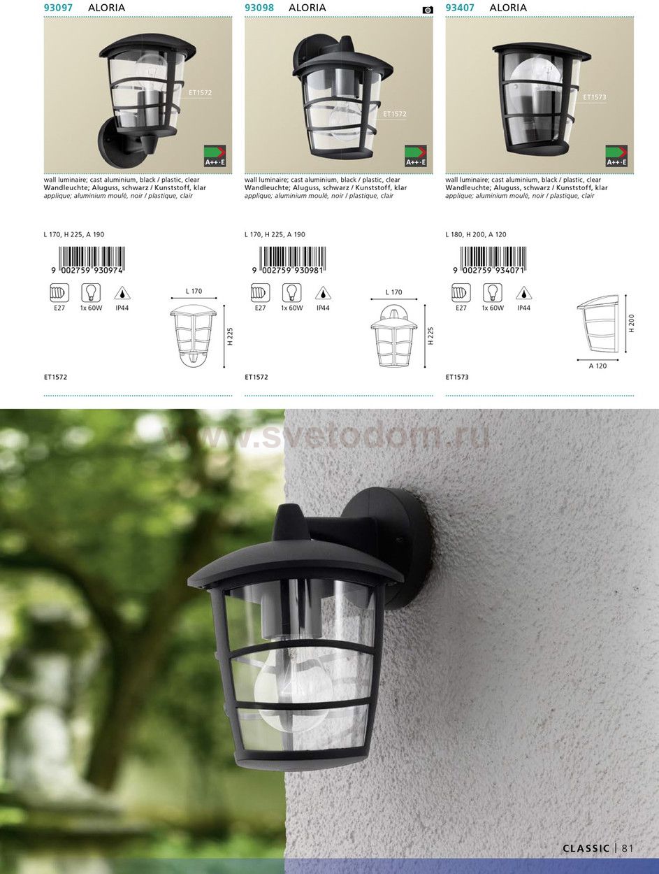 Обеспечение качественного уличного освещения – важная задача для владельцев коттеджей. Компания «Светодом» предлагает современные светильники, которые порадуют Вас отличным исполнением. В нашем каталоге представлена продукция известных производителей, пользующихся популярностью благодаря высокому качеству выпускаемых товаров. Уличный светильник Eglo 93098 не просто обеспечит качественное освещение, но и станет украшением Вашего участка. Модель выполнена из современных материалов и имеет влагозащитный корпус, благодаря которому ей не страшны осадки. Купить уличный светильник Eglo 93098, представленный в нашем каталоге, можно с помощью онлайн-формы для заказа. Чтобы задать имеющиеся вопросы, звоните нам по указанным телефонам.