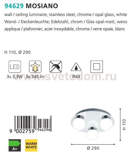 Светильник настено-потолочный светодиодный MOSIANO Комментарий