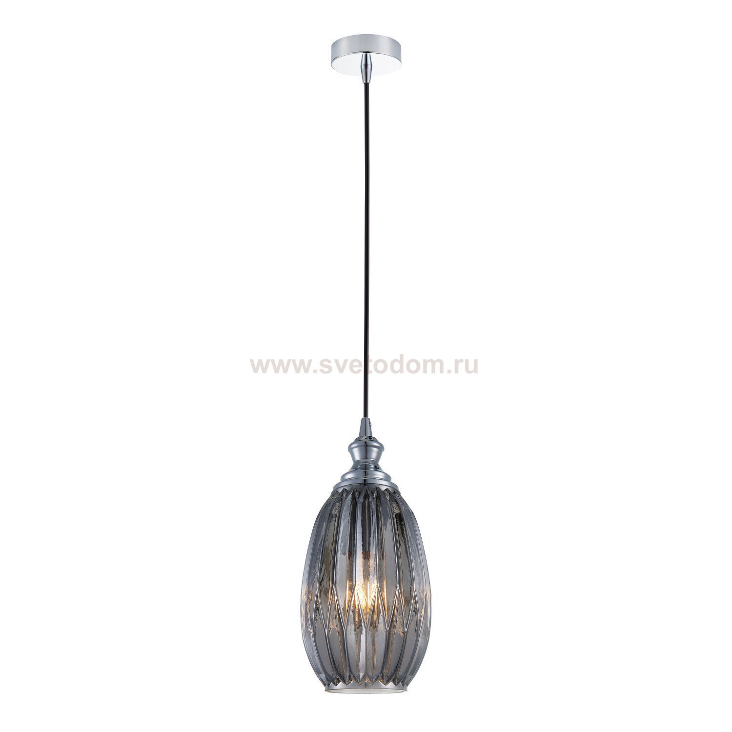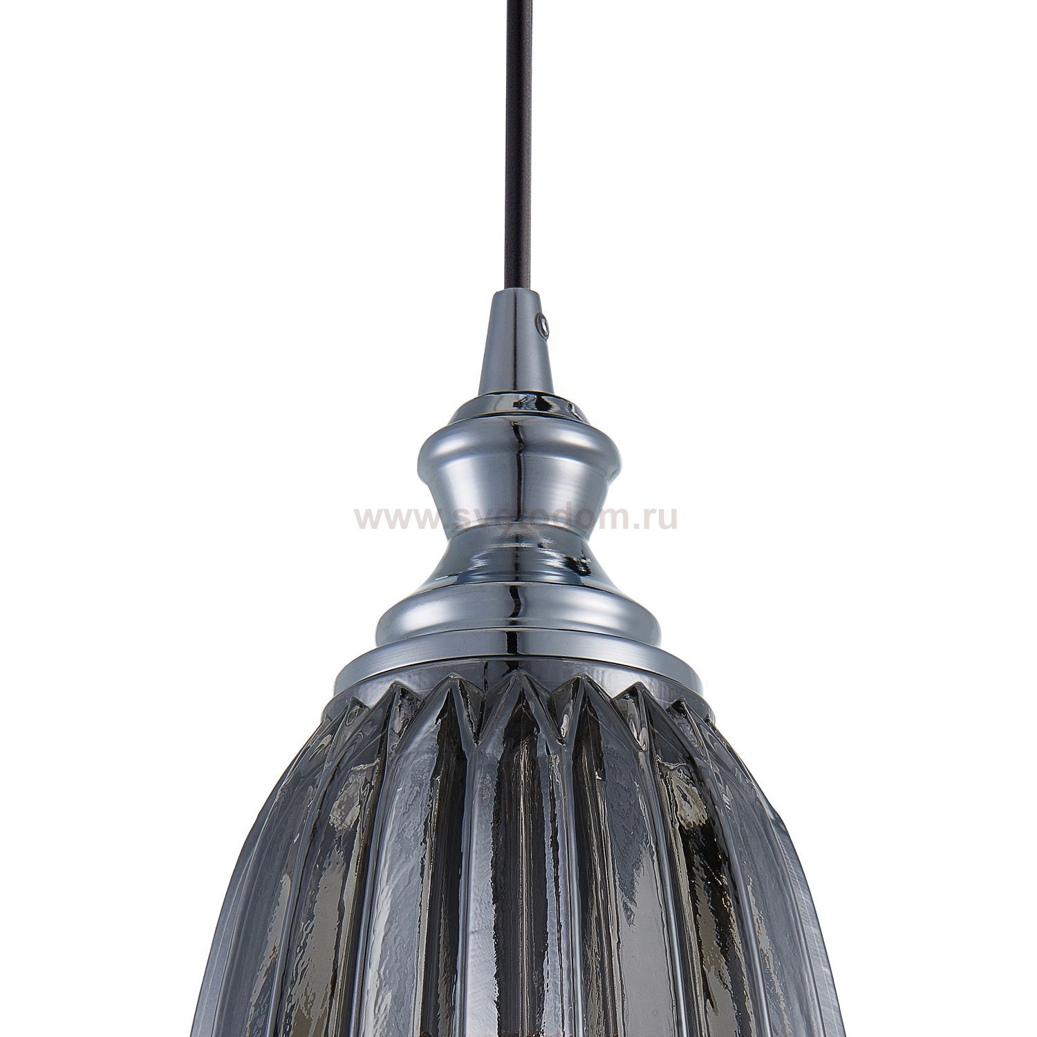 выдувное узорное стекло зеркально-серого цвета, каркас цвета хром Материал плафона