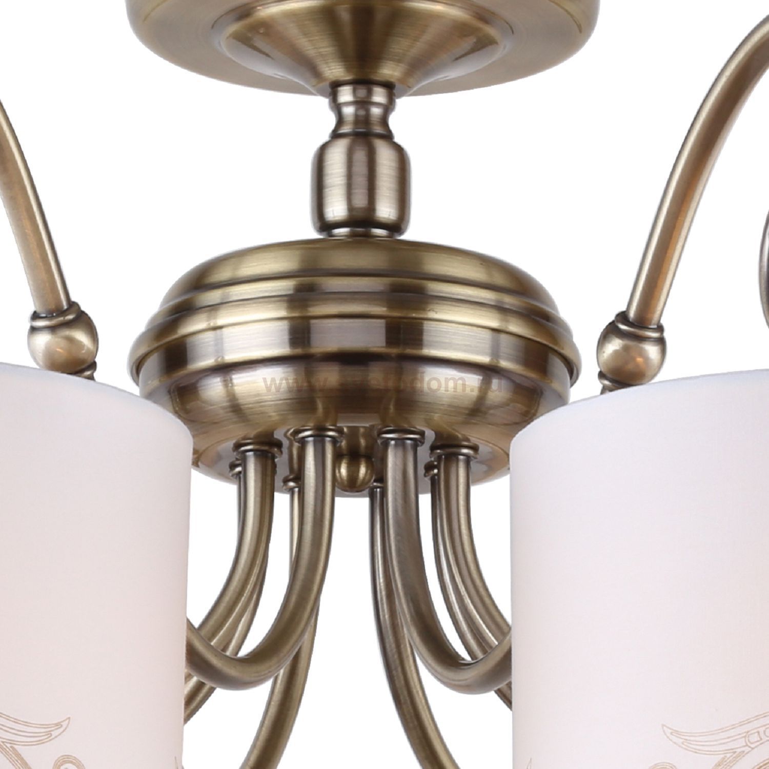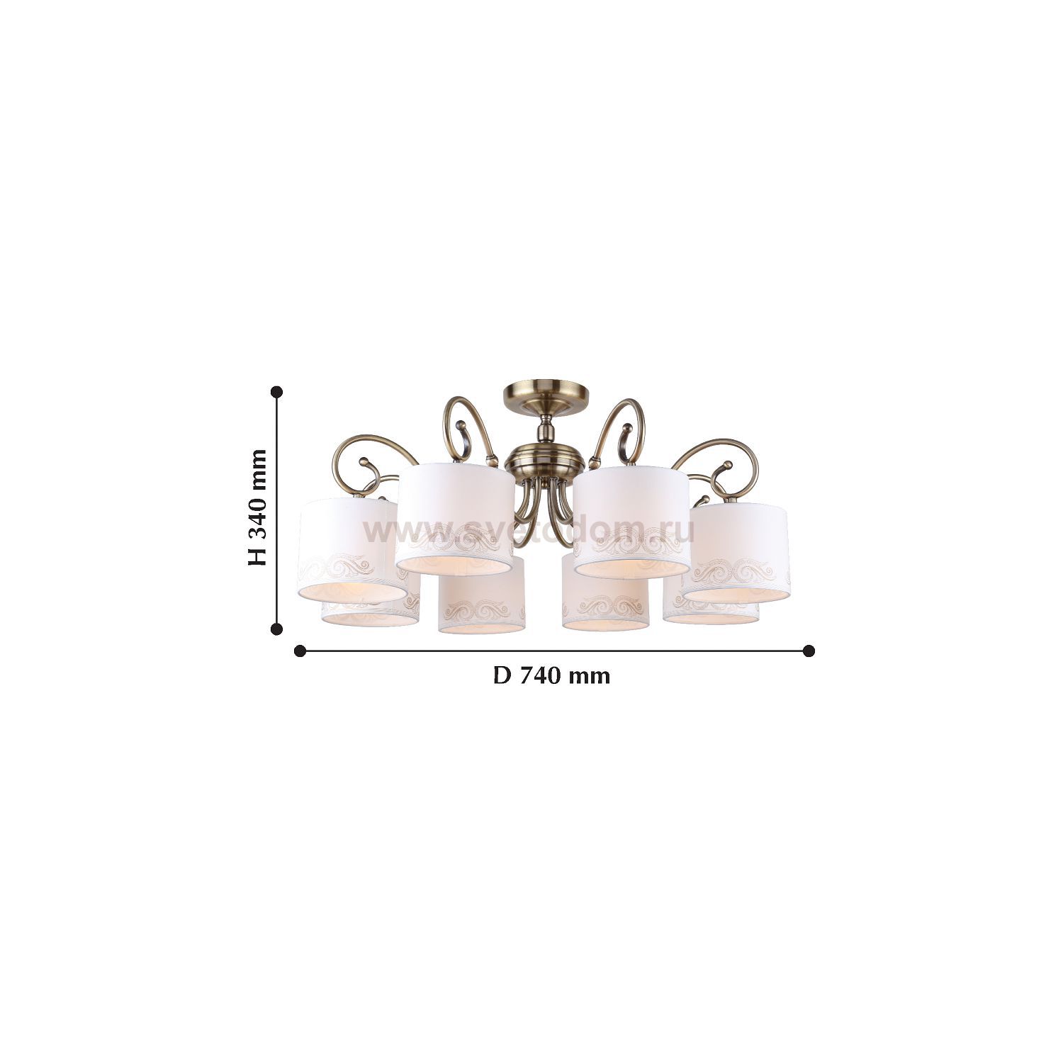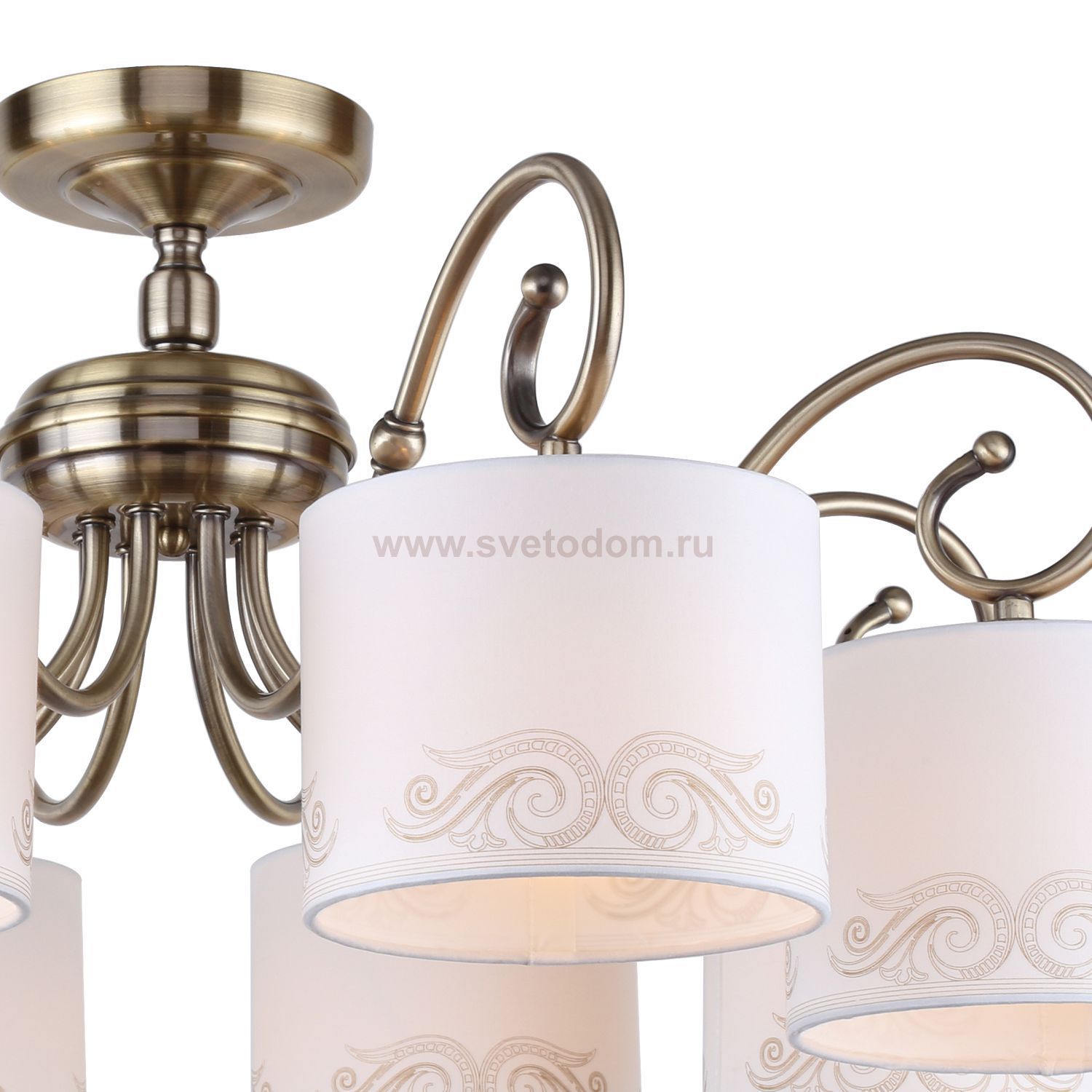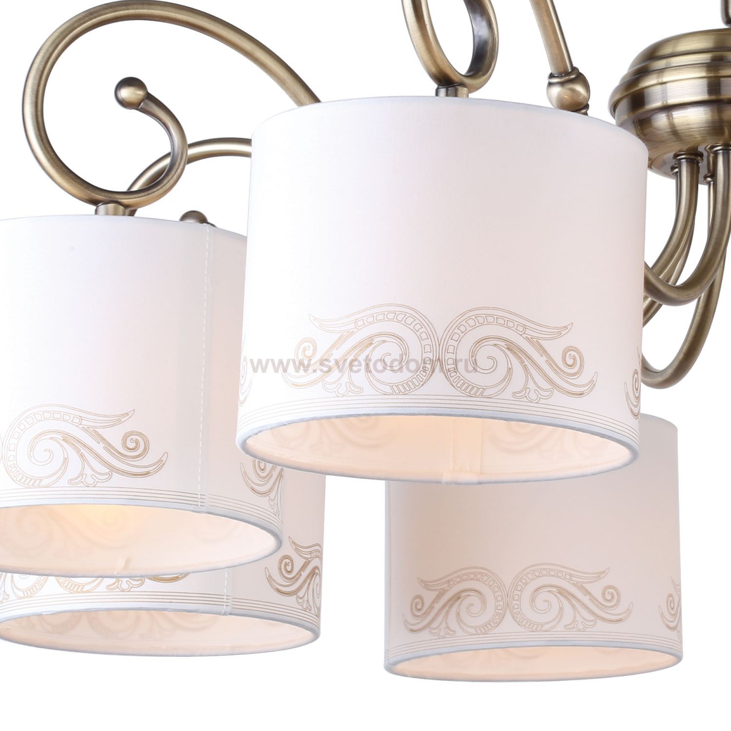 Каркас в цвете античная бронза оформлен декоративными элементами из бронзы и тканевыми плафонами с классическим узором. Материал плафона