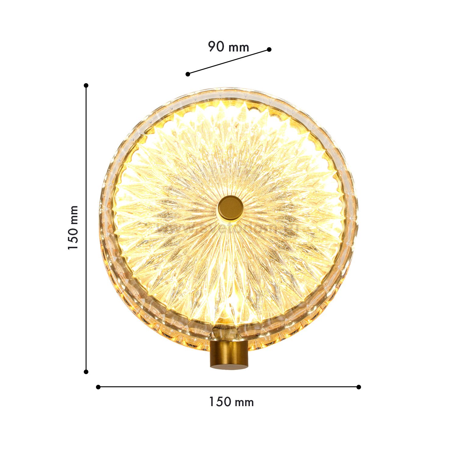 Настенный светильник с черным каркасом диаметром 9 см, состоит из двух узорных стеклянных дисков прозрачного и янтарного цвета, внутри которых располо Серия