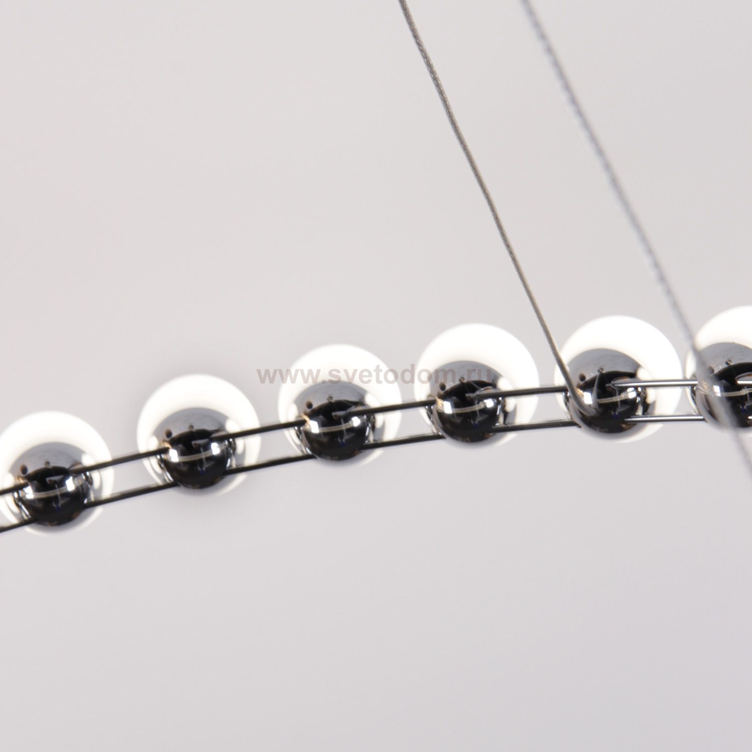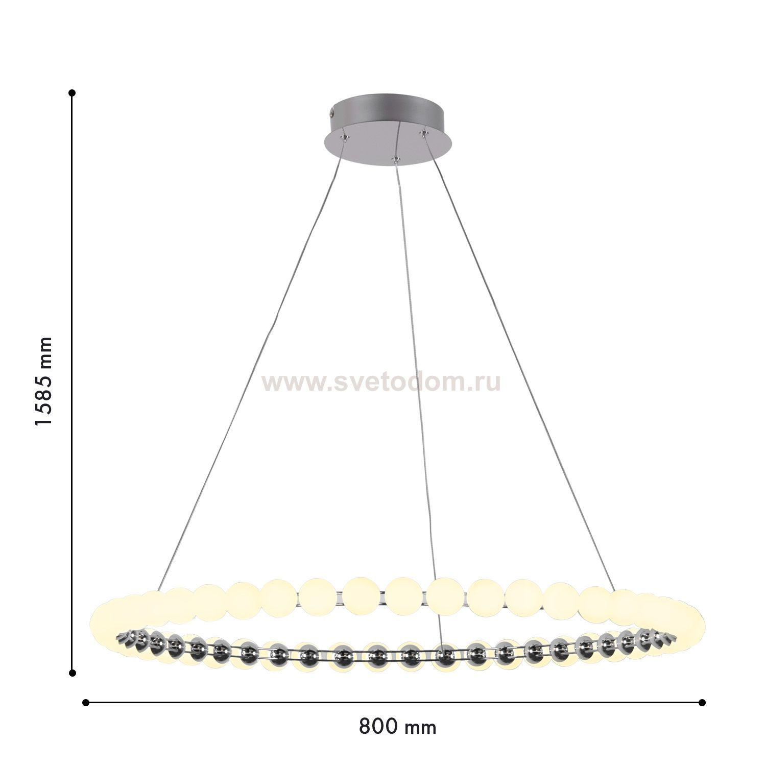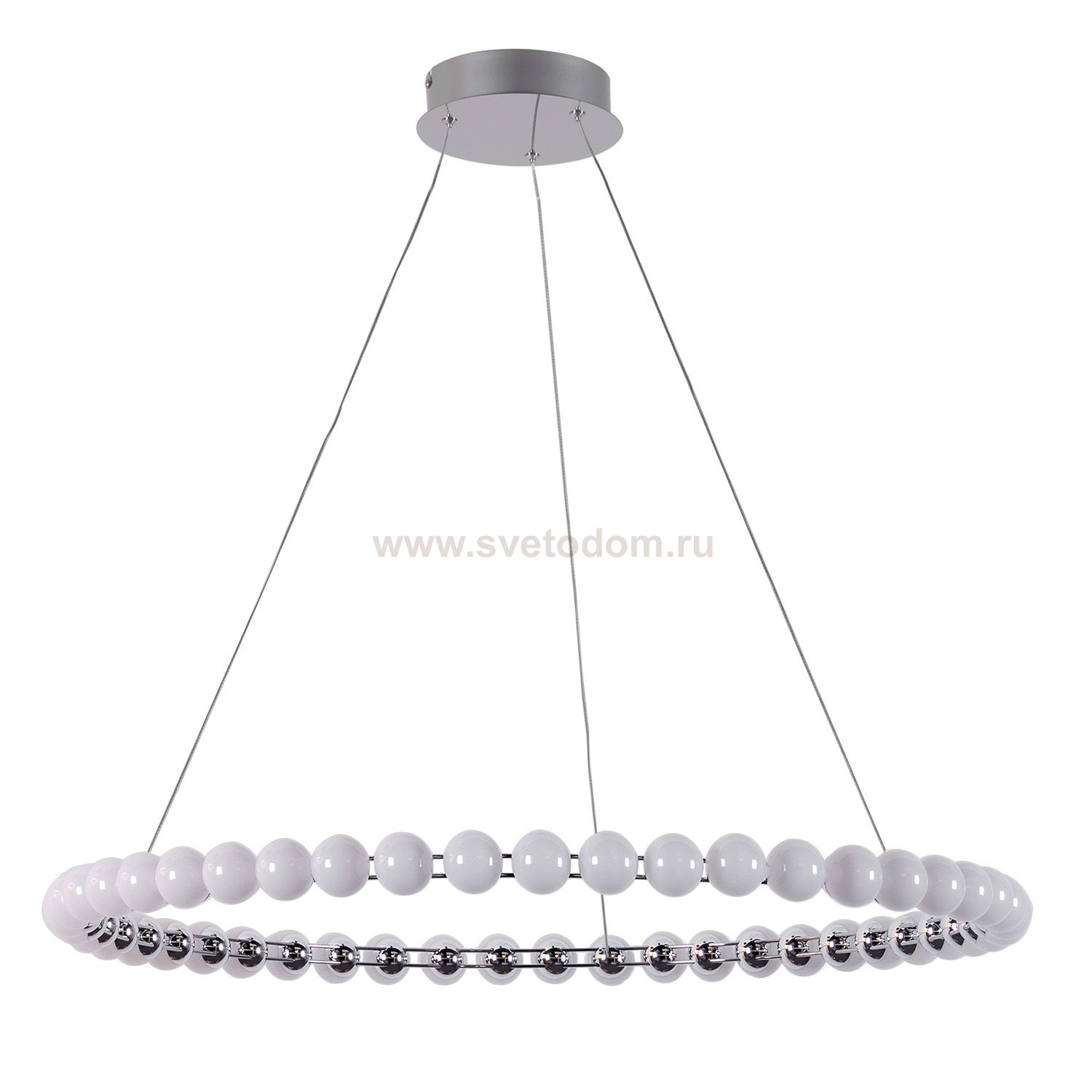 Подвесная люстра диаметром 80 см с каркасом в цвете хром, служащим проводником электричества, кольцо украшено белыми акриловыми шариками в качестве пл Серия