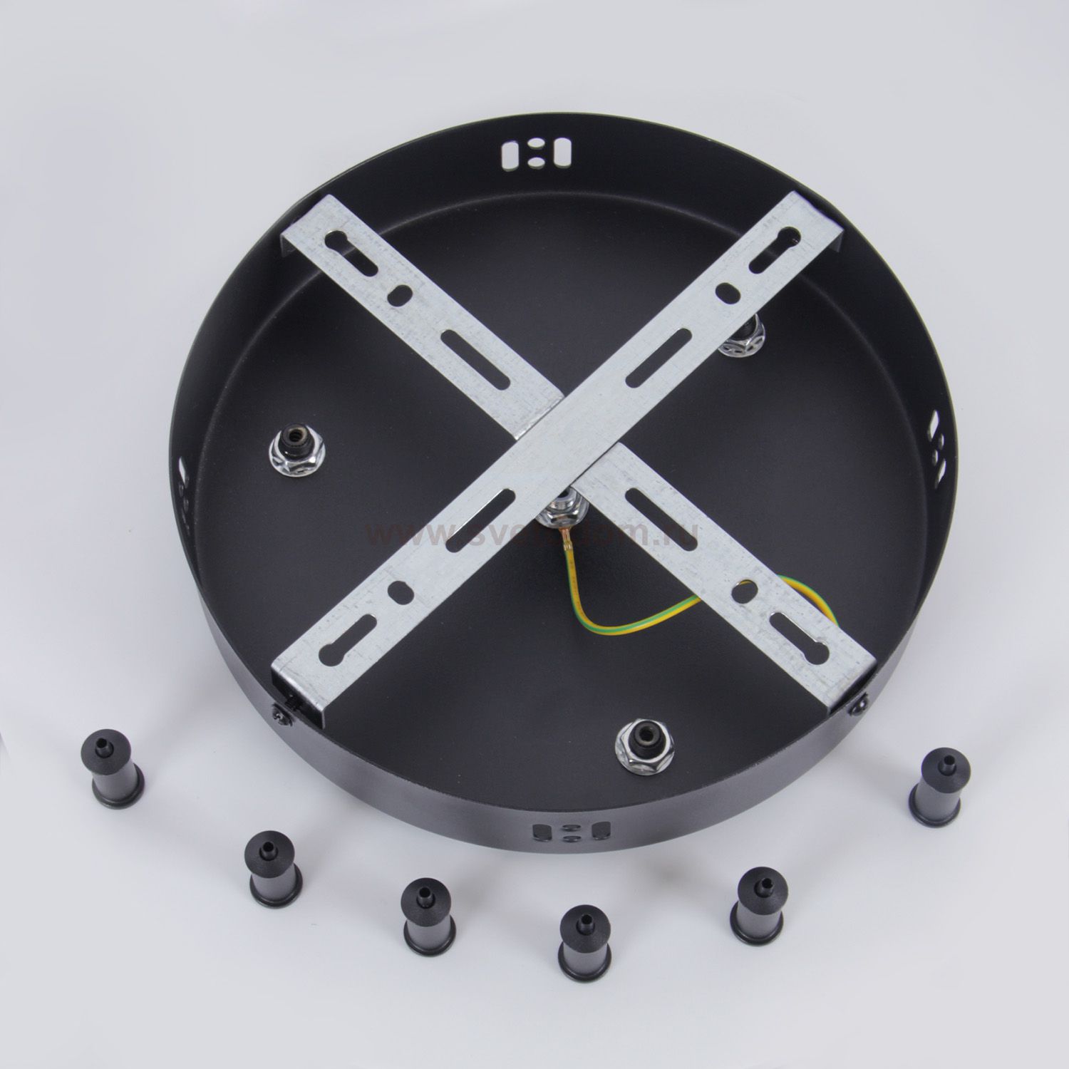 Универсальное крепление в черном цвете для создания композиции из трех кольцевых люстр, в комплекте металлическая чашка крепления, коннекторы, аксессу Серия