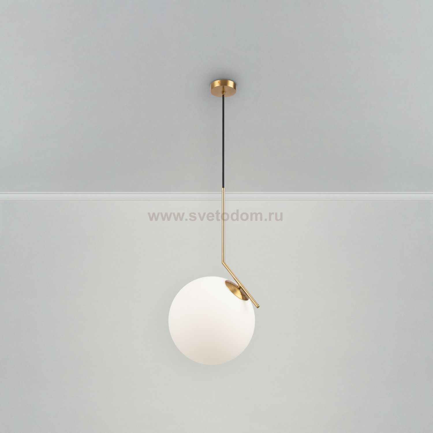 Новый ракурс и необычный угол зрения кардинально меняют представление о традиционных подвесах с плафонами-шарами. В этой серии металлическая арматура светильника изогнута под углом, ломанная линия создает яркий акцент, а сферическая форма плафона подчеркивает оригинальную геометрическую игру. Оттенок латуни и матовое стекло прекрасно дополняют друг друга. Популярный цветовой дуэт легко впишется в пространство современного интерьера. Благодаря наличию в серии светильников разного диаметра, есть возможность создать эффектную акцентную подсветку в помещении любых размеров.