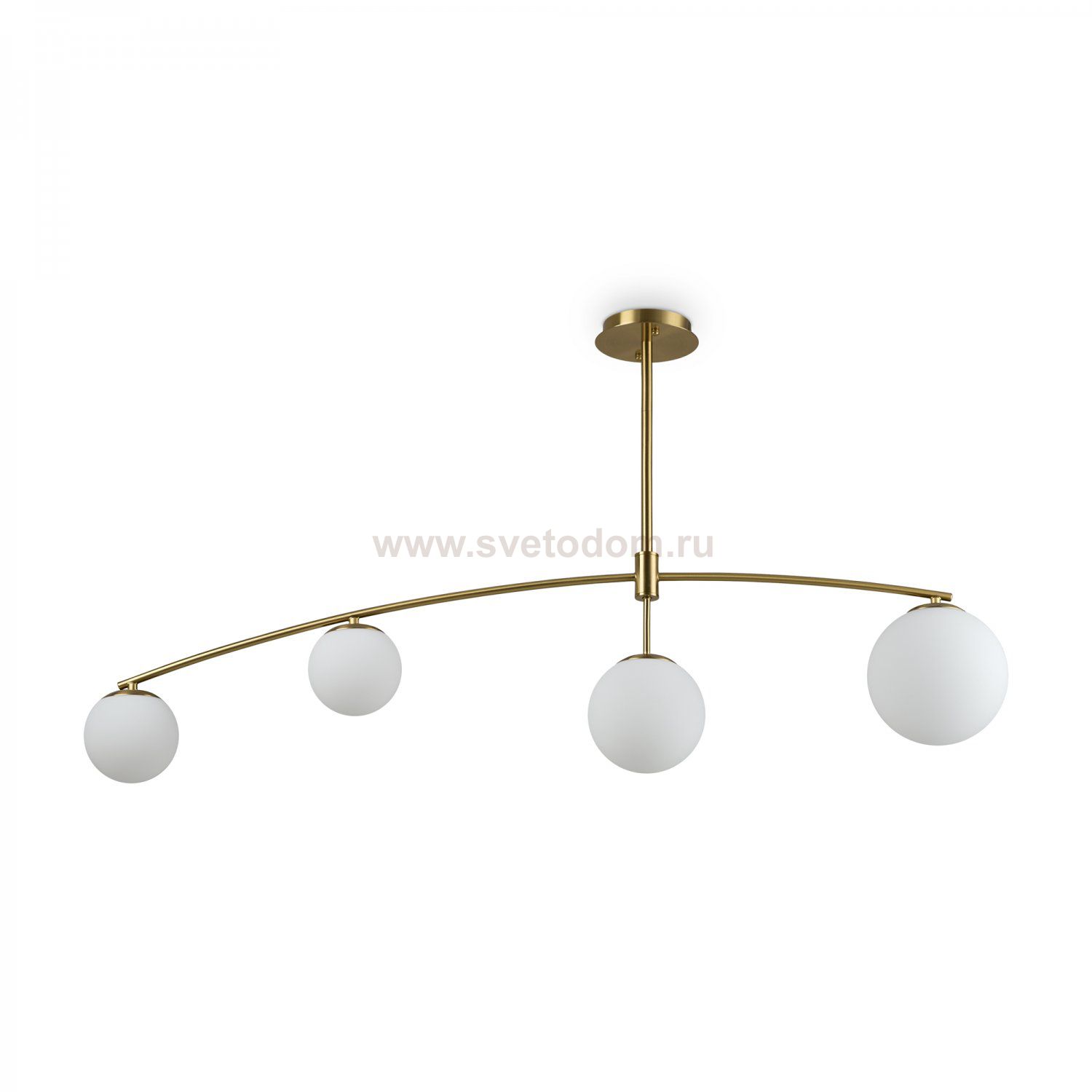 Арматура металл. Цвет латунь. Серия с необычной формой арматуры и раскидистыми плафонами. Белые плафоны в форме шара. Источник света лампа. Цоколь E14.