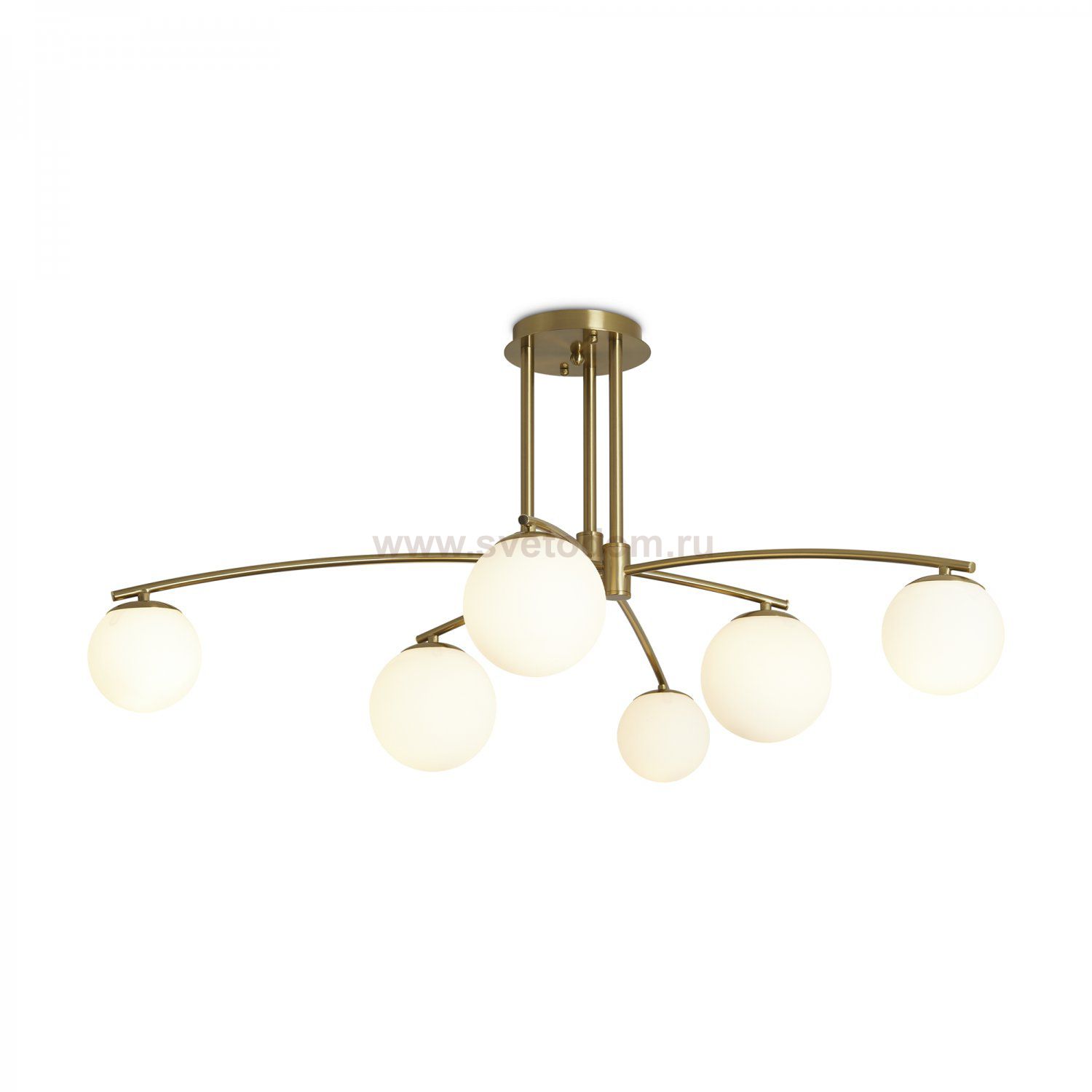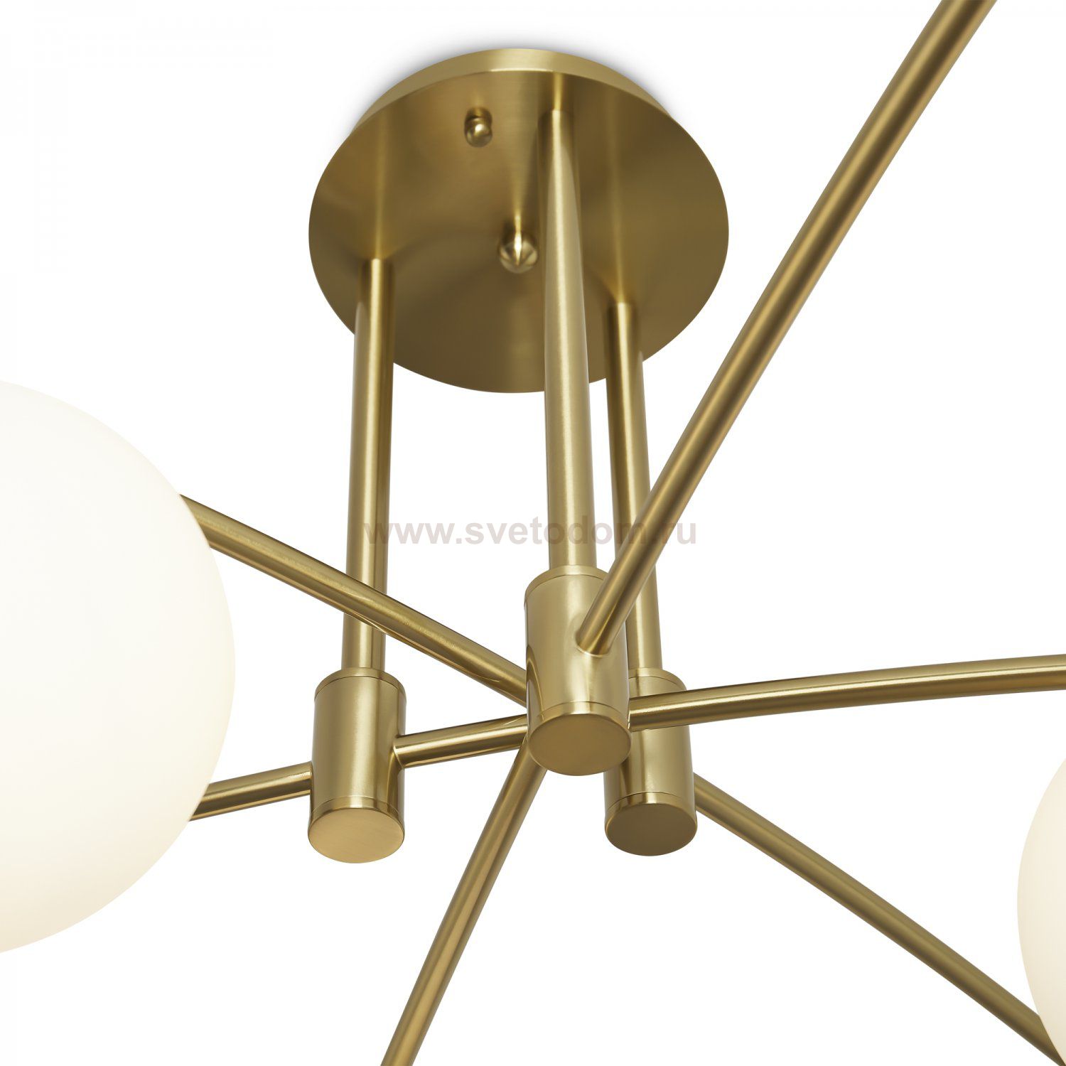 Арматура металл. Цвет латунь. Серия с необычной формой арматуры и раскидистыми плафонами. Белые плафоны в форме шара. Источник света лампа. Цоколь E14.