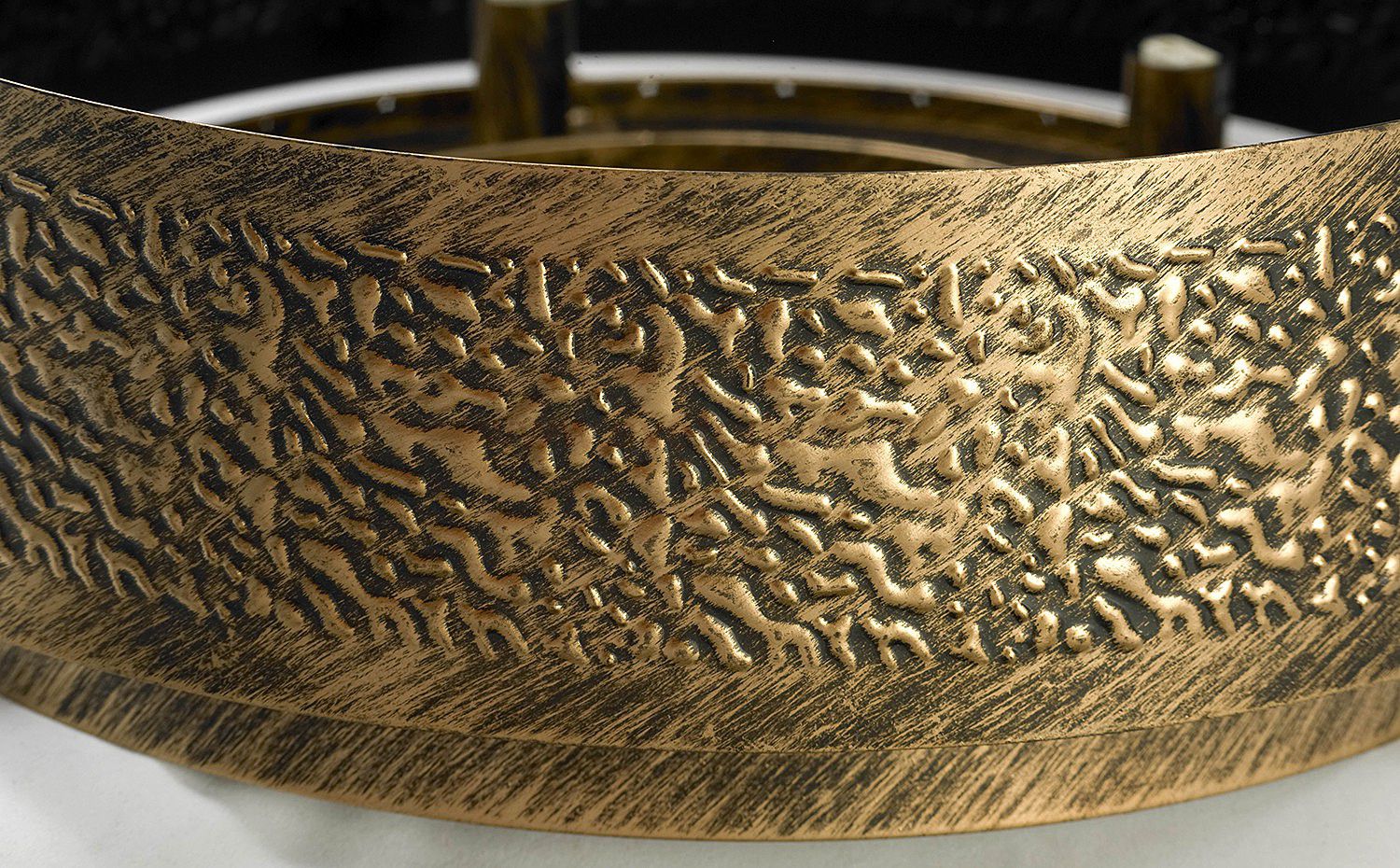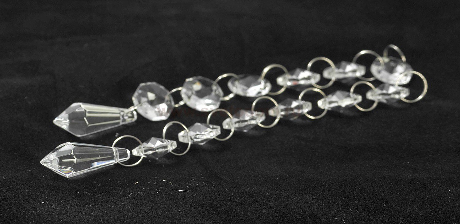 Потолочная люстра в диаметре сорок сантиметров с коричневым теснённым орнаментом на металлическом цилиндре который опоясывает стеклянные многоярусные с подвески. Игра света от преломления на подвесках создаст отблесков на глянцевых поверхностях интерьера.