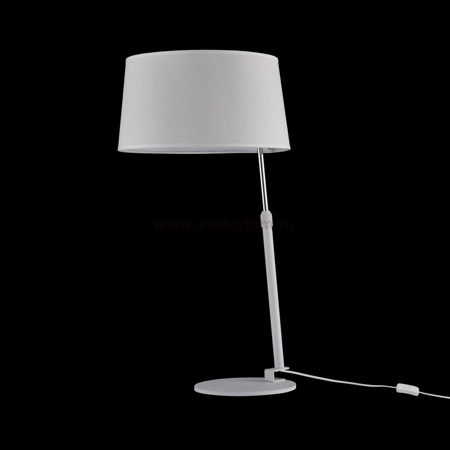 Материал арматуры - металл. Абажур из текстиля и льна, нанесенного на ПВХ. Цвета — белый, темно-серый, серый, белый с черным кантом. Источник света в подвесных моделях скрыт под матовым рассеивателем. Длина провода 3 метра. Торшеры и настольные лампы с регулируемым кронштейном. Лампа с цоколем Е27.