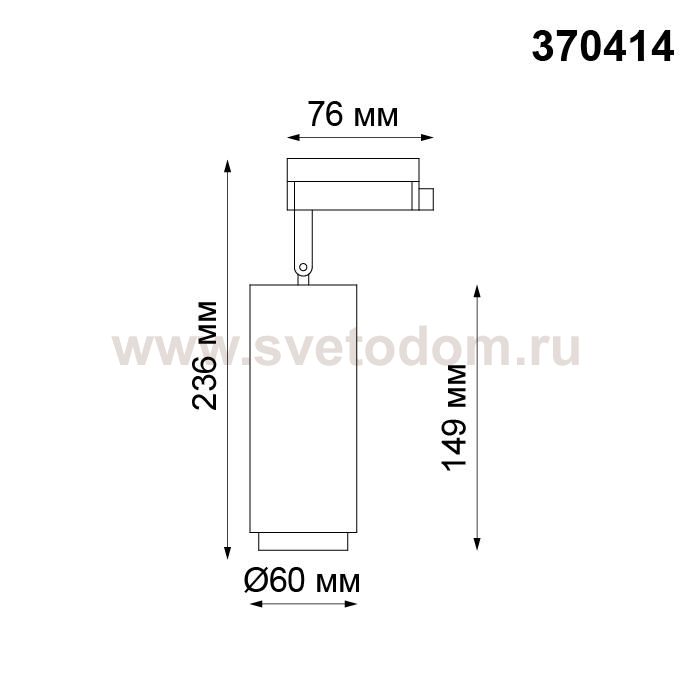 370414 PORT NT19 082 черный Трековый однофазный светильник IP20 GU10 50W 220V PIPE Штрих-код
