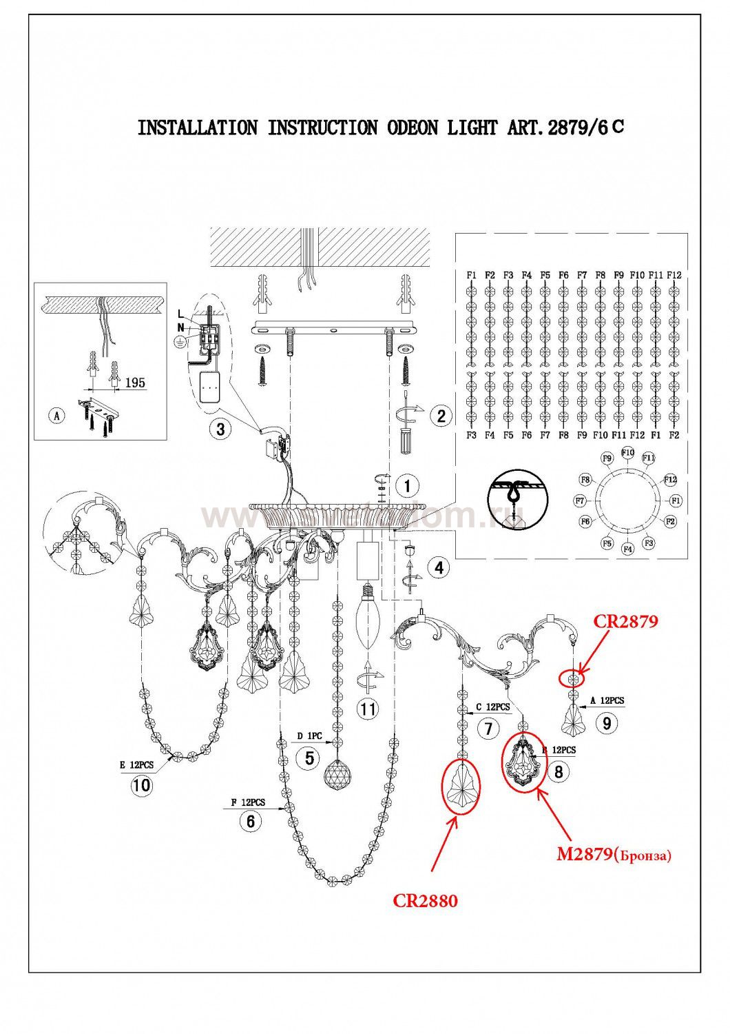 арматура: металл, декор: хрусталь Комментарий