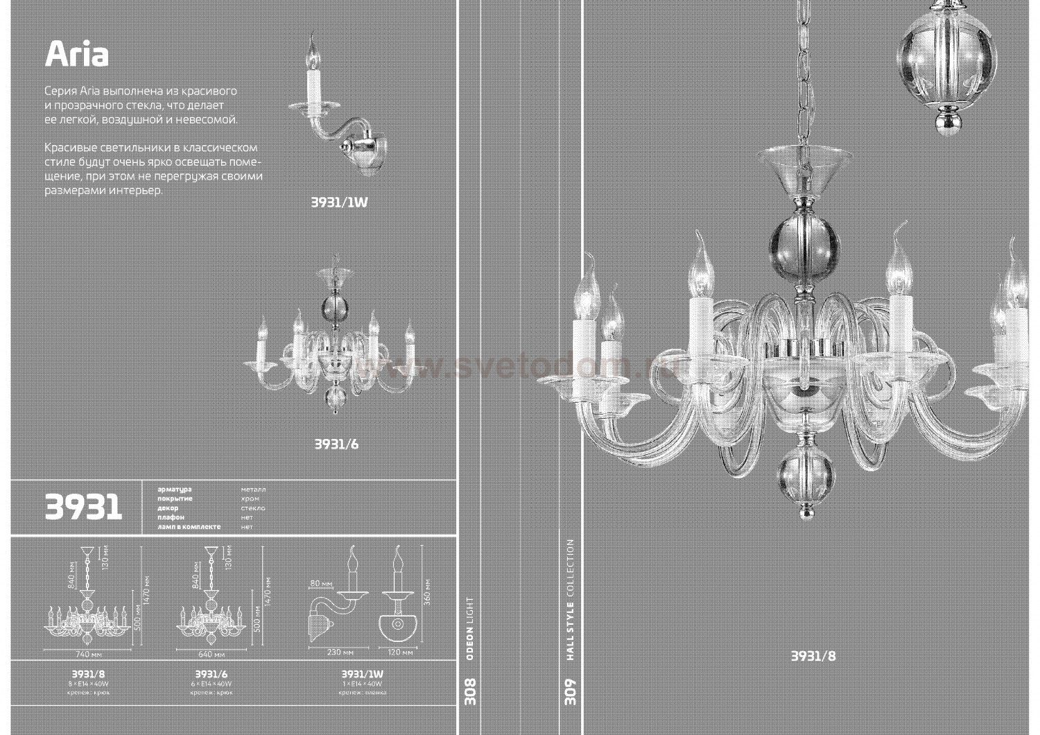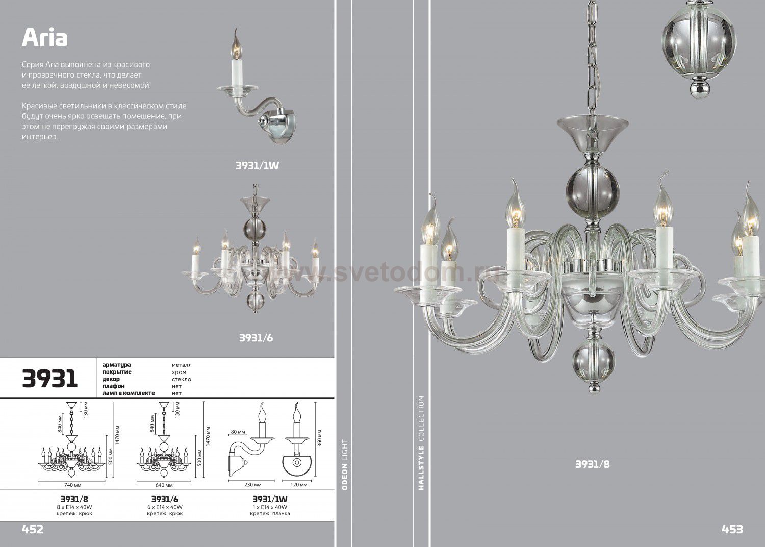 Люстра 3931 / 6 линии Aria выполнена из красивого и прозрачного стекла, что делает ее легкой, воздушной и невесомой. Красивая люстра в классическом стиле будет очень ярко освещать помещение, при этом не перегружая своими размерами интерьер. Цоколь E14. Мощность 6*40W. Нет ламп в комплекте.