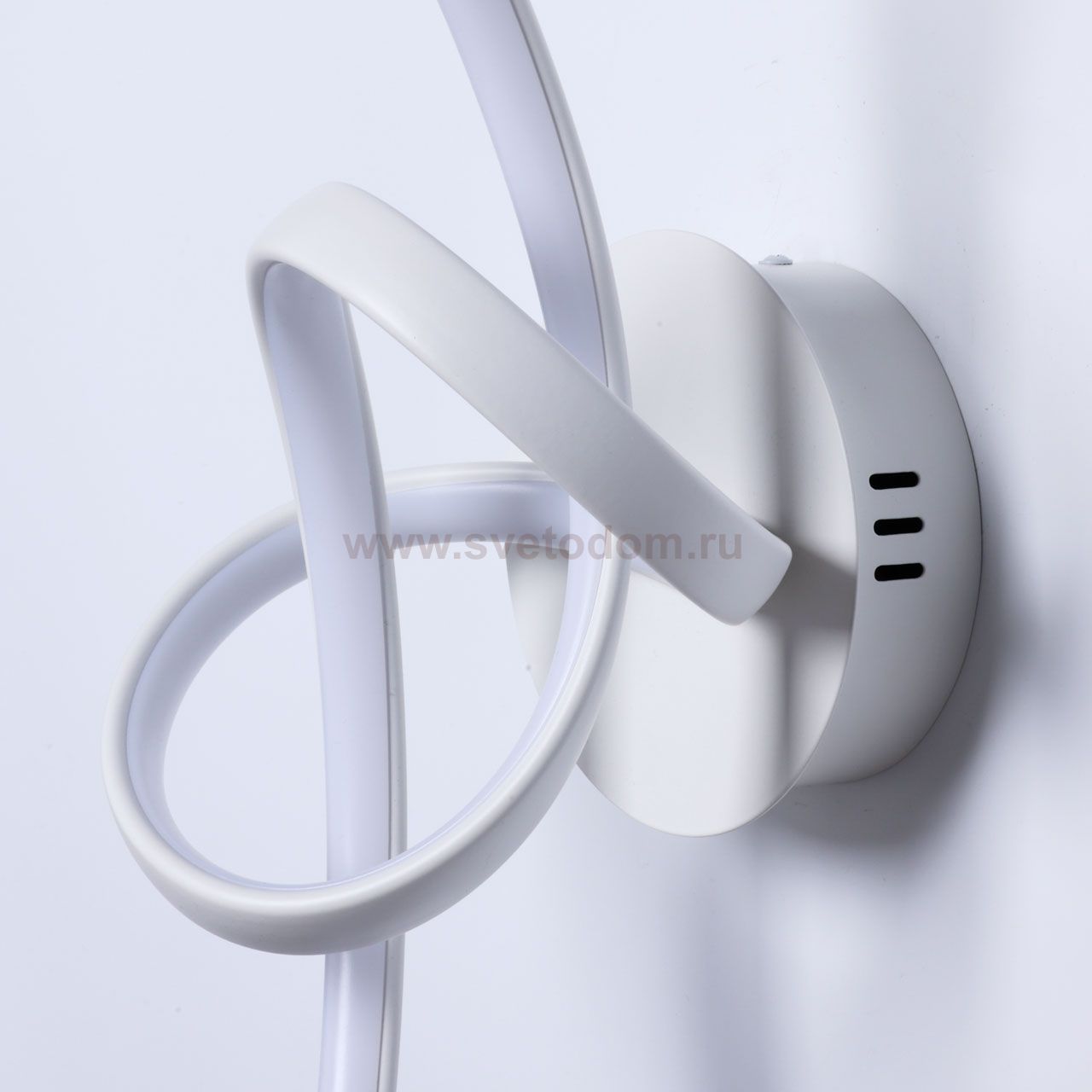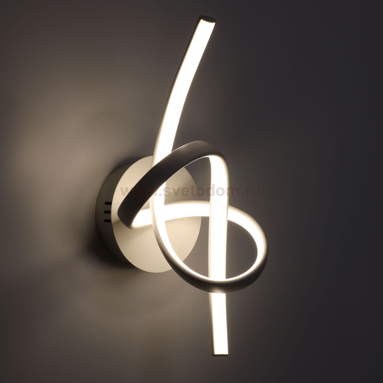 Металлическое основание настенного бра окрашено в белый цвет. Светодиодные источники света закрыты белым силиконом. Комментарий