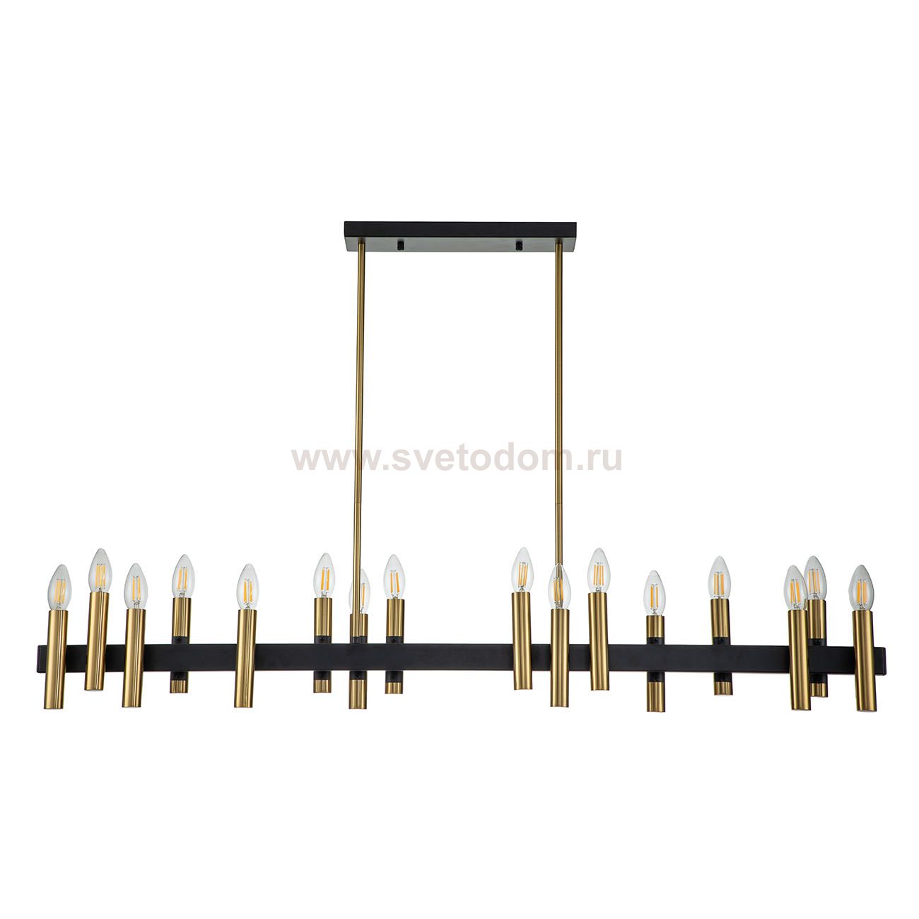 Традиции в современном стиле - именно так можно охарактеризовать серию итальянских светильников Cero. Плафоны в виде золотых свечей будто бы парят в воздухе, но арматура из черного кованого металла удерживает их, придавая всей конструкции завершенный вид. Такой минималистичный, но элегантный светильник станет главным акцентом вашего дизайна. Размер 1220*125*190/1025 МощностьE14 40W х 16 ЦветЧЕРНЫЙ,ЗОЛОТОЙ Материал МЕТАЛЛ