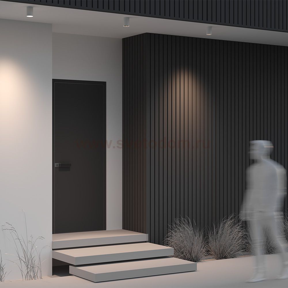 Материал арматуры - алюминий, цвет - черный и белый. Потолочный светильник, LED-источник света, цветовая температура 3000К, два размера, два цвета и две мощности (5Вт и 10Вт), высокая степень защиты от пыли и влаги IP65, высокий индекс цветопередачи >90.