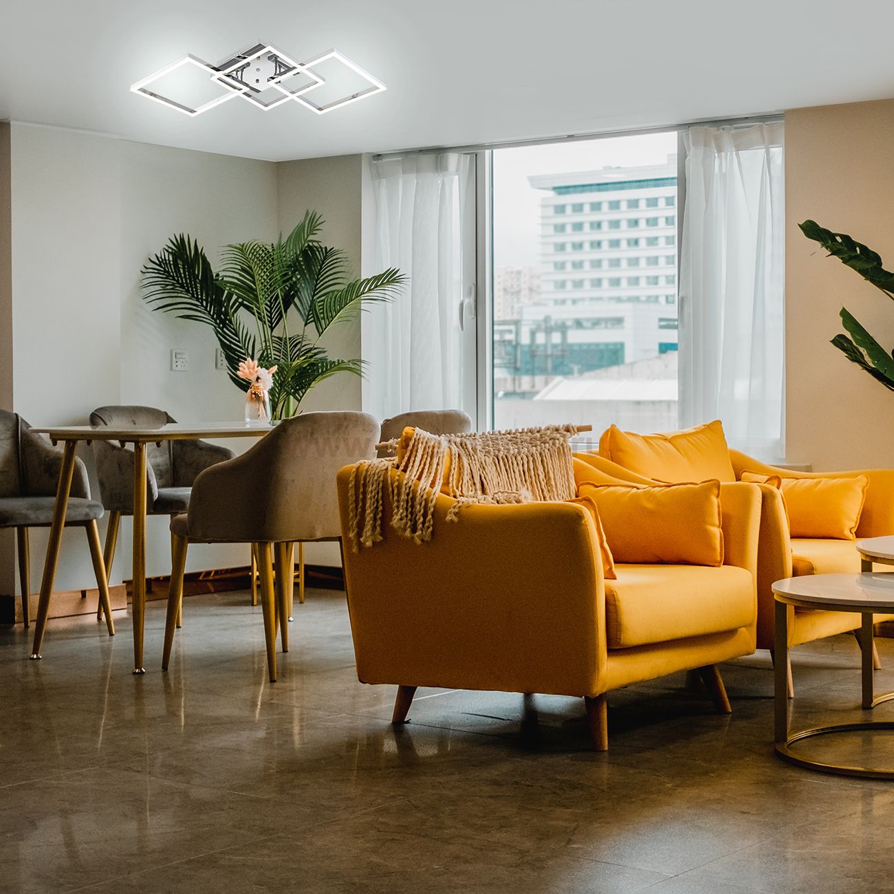 Потолочный светодиодный светильник 95Вт, 6720Лм, 3000-6500К, Ra>80, плавная регулировка мощности, изменение цветовой температуры, ночник, металл/акрил, хром