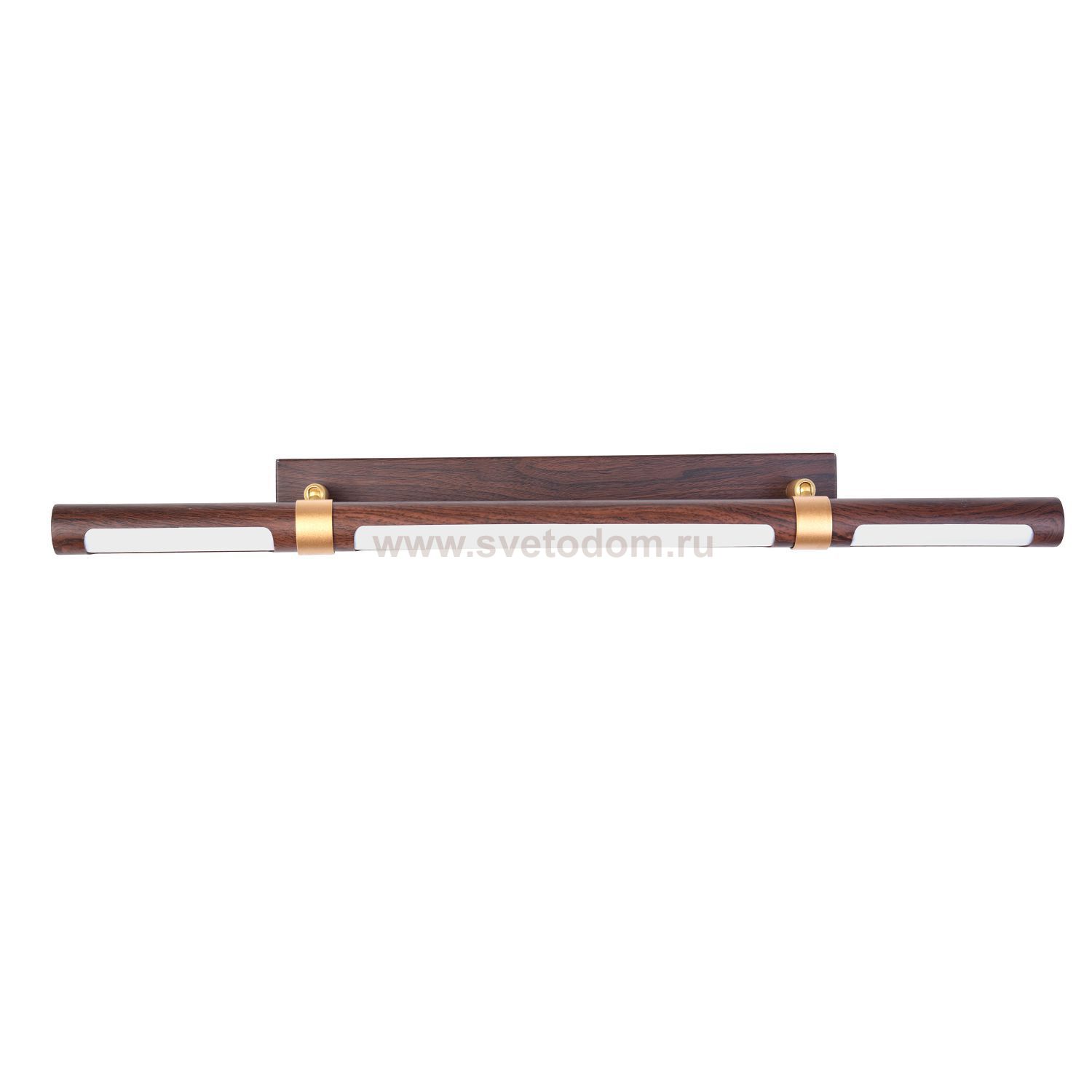 каркас светильника с поворотным механизмом выполнен из металла, окрашенного под темное дерево, которое благородно сочетается с креплениями в цвете мат Серия