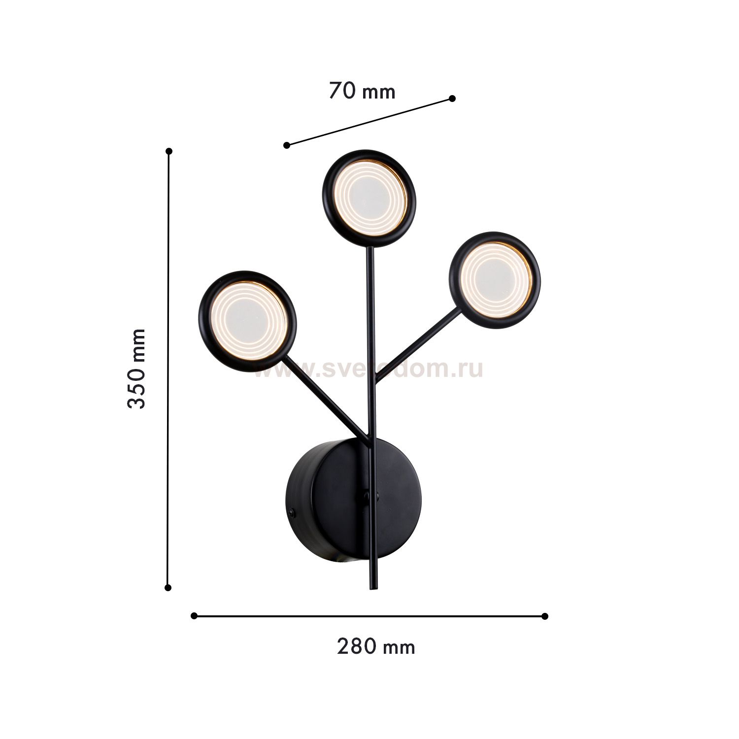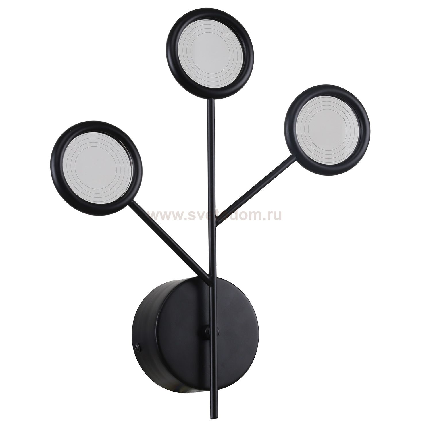 Настенный светильник с матовым черным каркасом, внутренний периметр плафонов подсвечен лентой-LED, 3D-эффект усиливается за счет нанесенного на акрил Серия