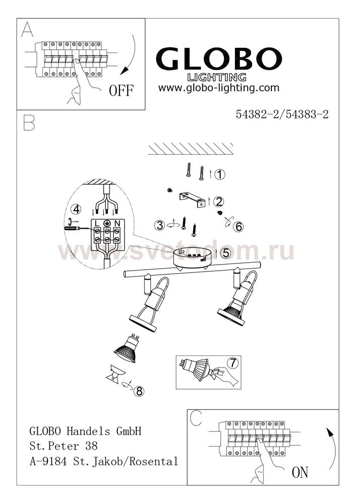 Светильники-споты – это оригинальные изделия с современным дизайном. Они позволяют не ограничивать свою фантазию при выборе освещения для интерьера. Такие модели обеспечивают достаточно качественный свет. Благодаря компактным размерам Вы можете использовать несколько спотов для одного помещения. Интернет-магазин «Светодом» предлагает необычный светильник-спот Globo 54382-2 по привлекательной цене. Эта модель станет отличным дополнением к люстре, выполненной в том же стиле. Перед оформлением заказа изучите характеристики изделия. Купить светильник-спот Globo 54382-2 в нашем онлайн-магазине Вы можете либо с помощью формы на сайте, либо по указанным выше телефонам. Обратите внимание, что у нас склады не только в Москве и Екатеринбурге, но и других городах России.