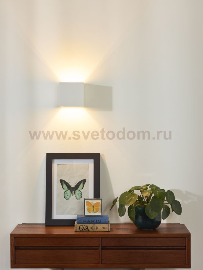 An imaginative interpretation combined with warm lighting. Wall light Gipsy is placed comfortably near a wall and shines brightly in your home. Thanks to the shade made of plaster, the light stays well into place and no valuable warmth is lost. With the square model of 11.5 x 11.5 centimetres you can dream away in your armchair. Gipsy lends itself perfectly for LED-lighting and a dimmer. A simple model will instantly bring atmosphere into your home.