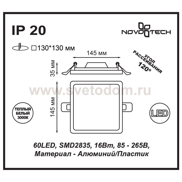 Встраиваемый светильник Novotech 357487 STEA является тенденцией современного функционального врезного потолочного освещения для гостиной, зала, спальни или другого помещения. При выборе обратите внимание на цветовую гамму модели и подберите подходящие люстры, бра или торшеры из аналогичной коллекции, что сделает помещение по-дизайнерски профессиональным и законченным.